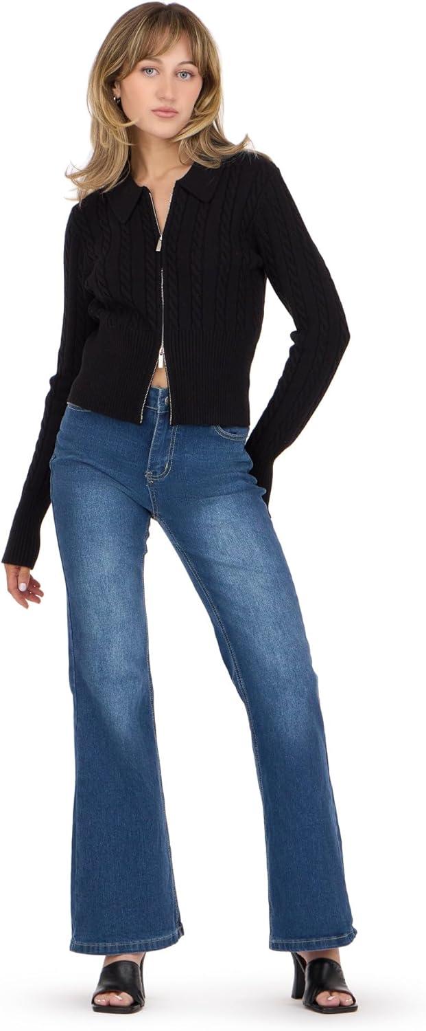 Forever 21 Womens Double Zip Cable Knit Sweater with Collar(Black)