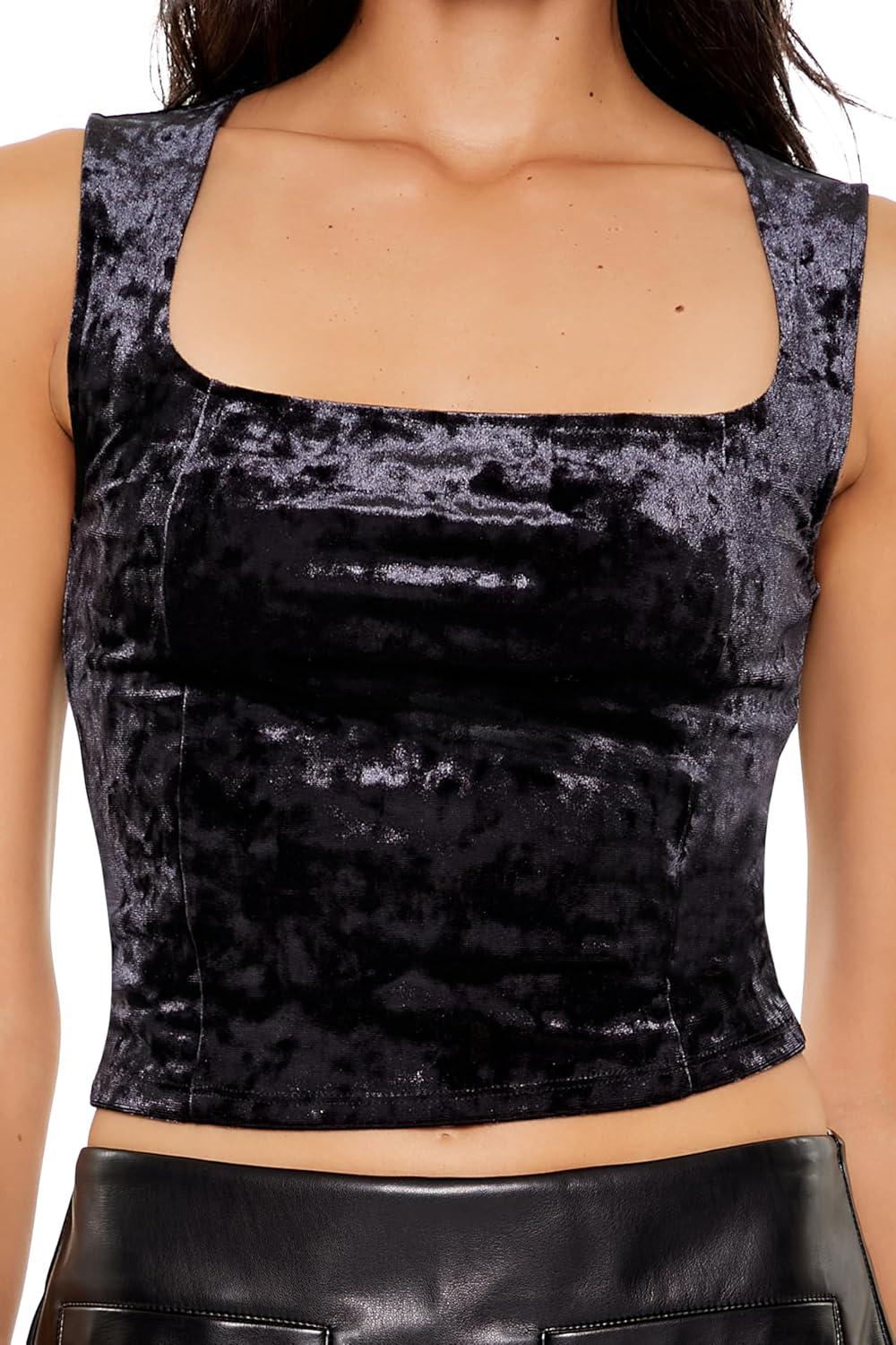 Forever 21 Womens Crushed Velvet Crop Top(Black)