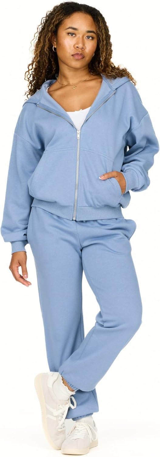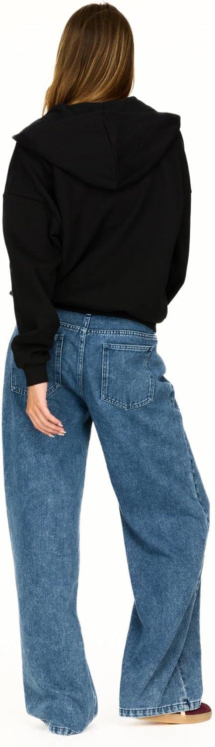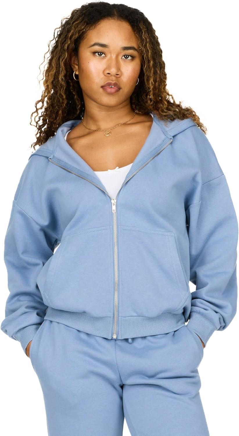 Forever 21 womens Full Zip Front Sweatshirt With Drawstring Hood(Blue)