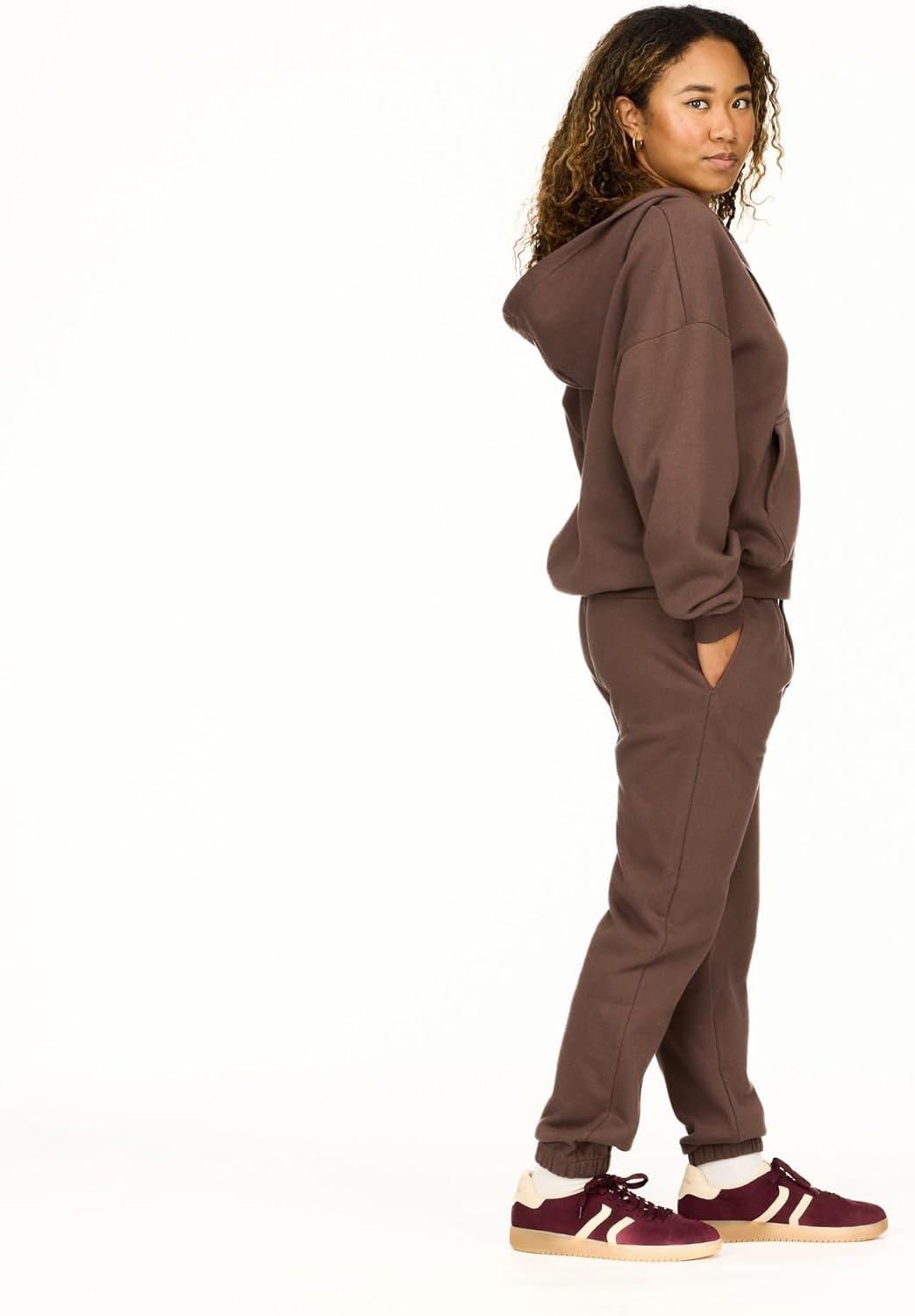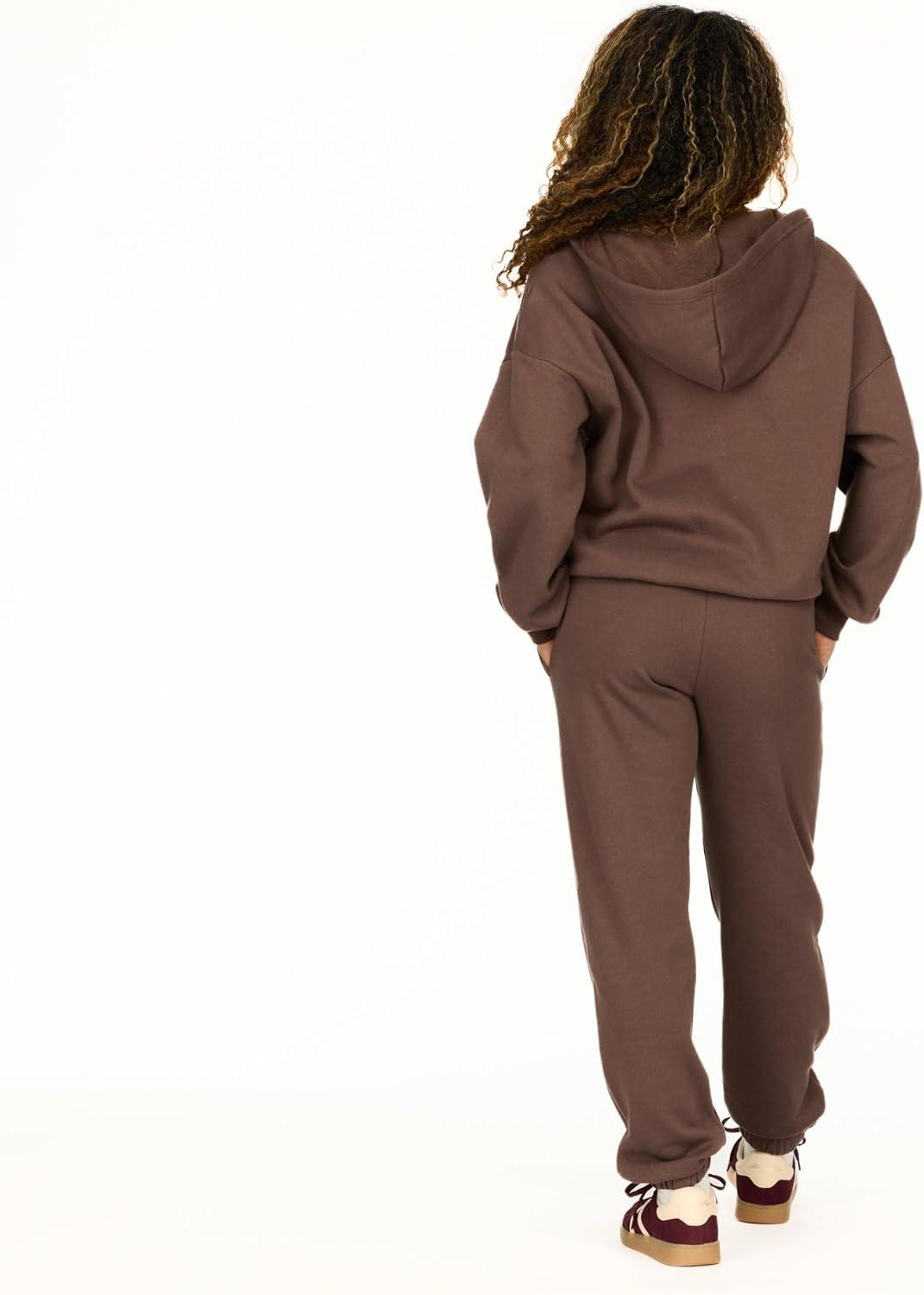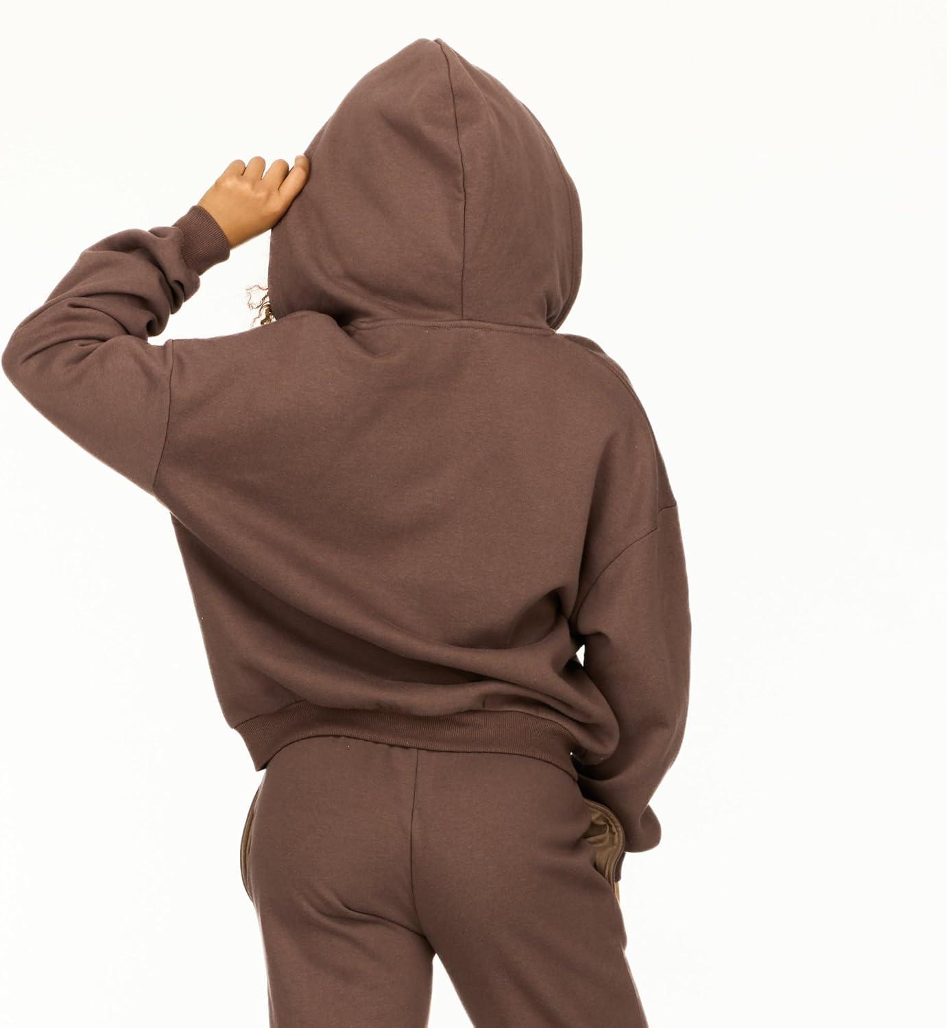 Forever 21 womens Full Zip Front Sweatshirt With Drawstring Hood(Brown)