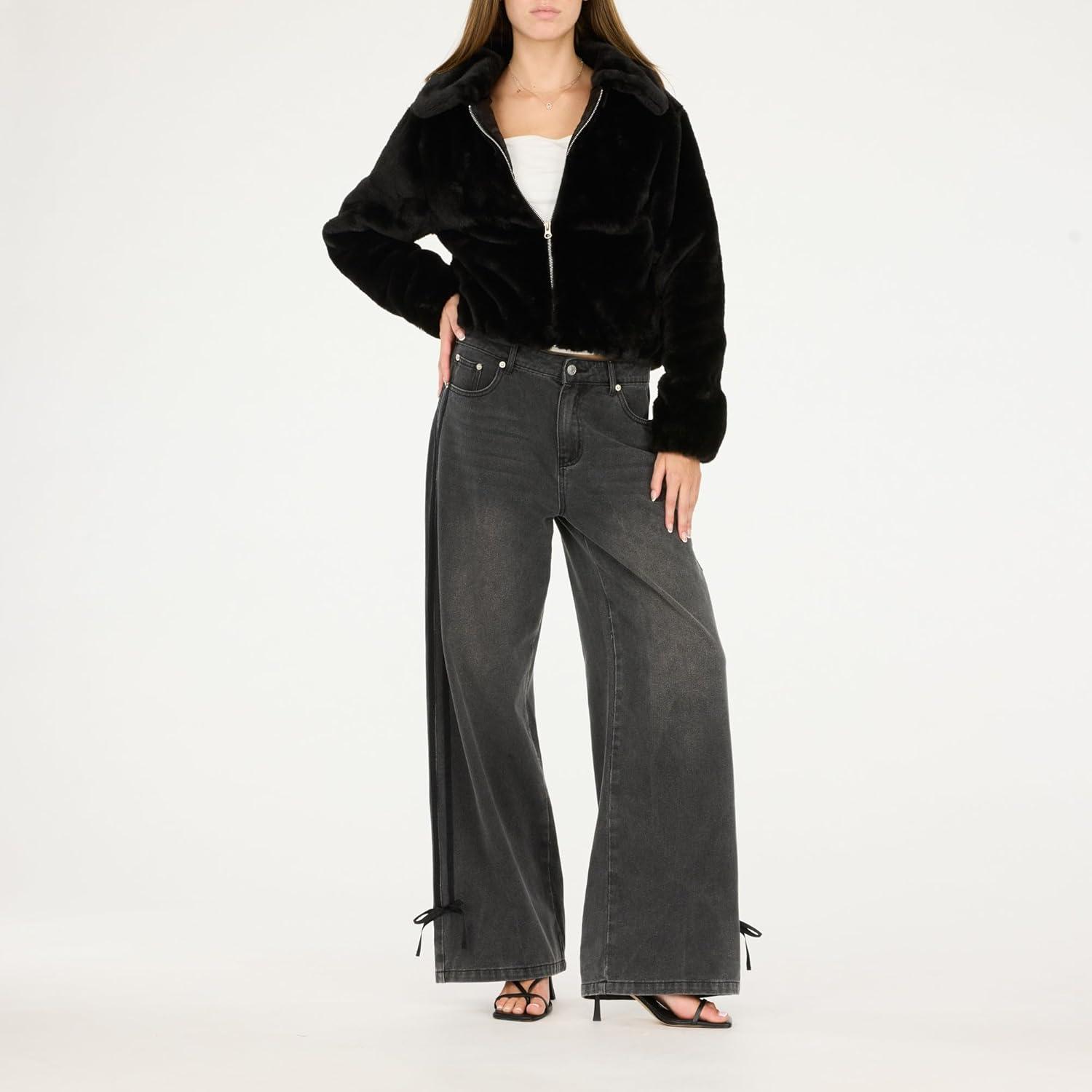• Forever 21 womens Faux Fur Zip Up Jacket(Black)
