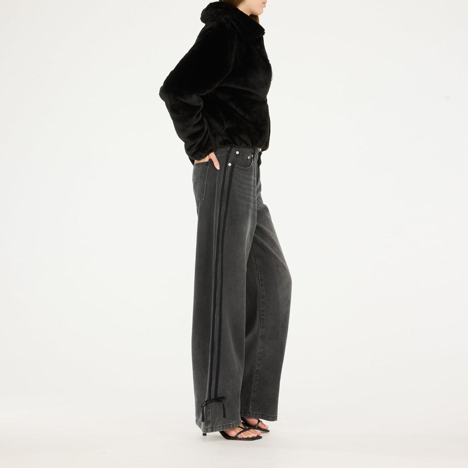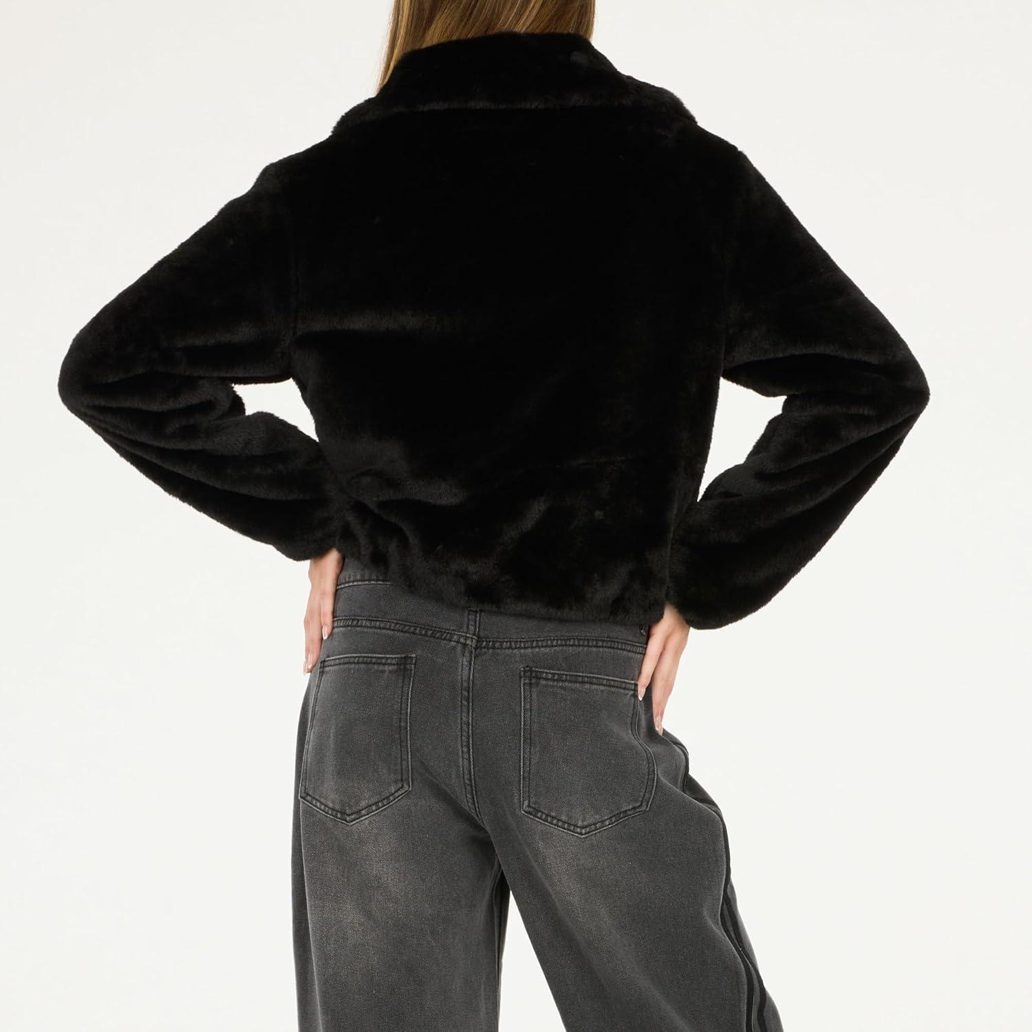 Forever 21 womens Faux Fur Zip Up Jacket(Black)