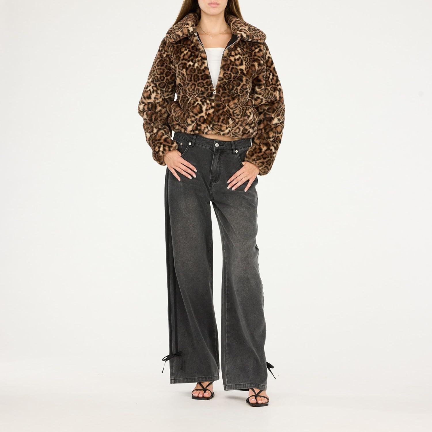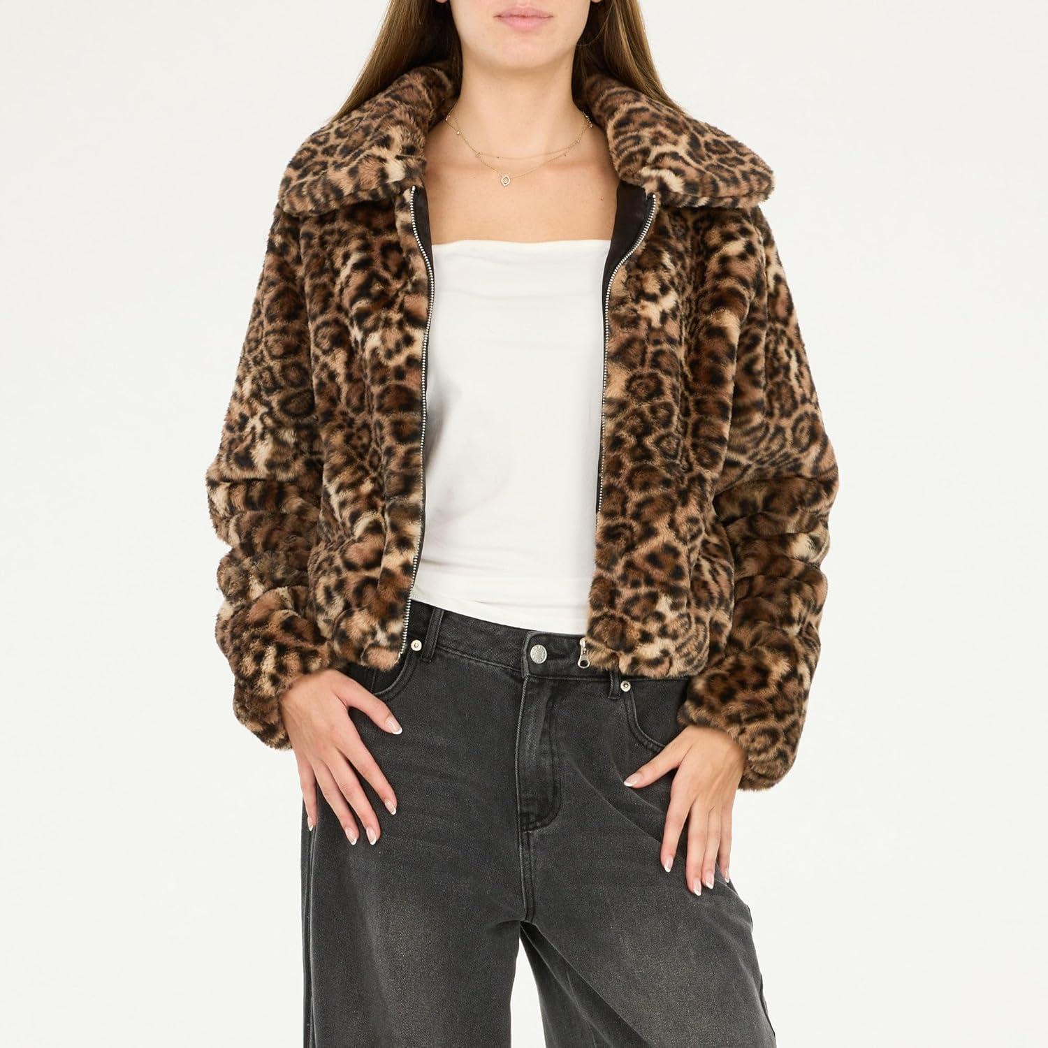 • Forever 21 womens Faux Fur Zip Up Jacket(Leopard)