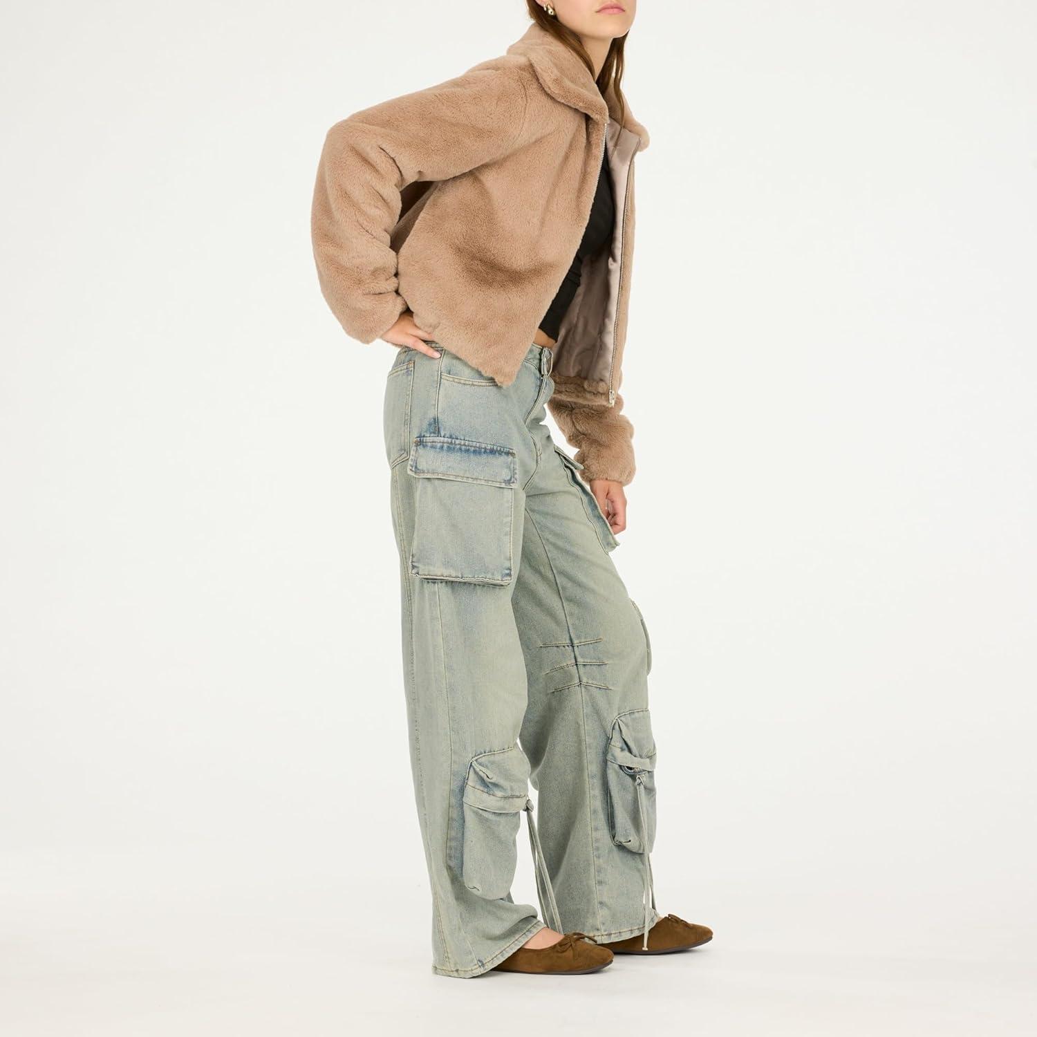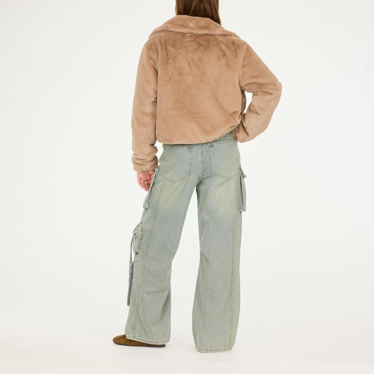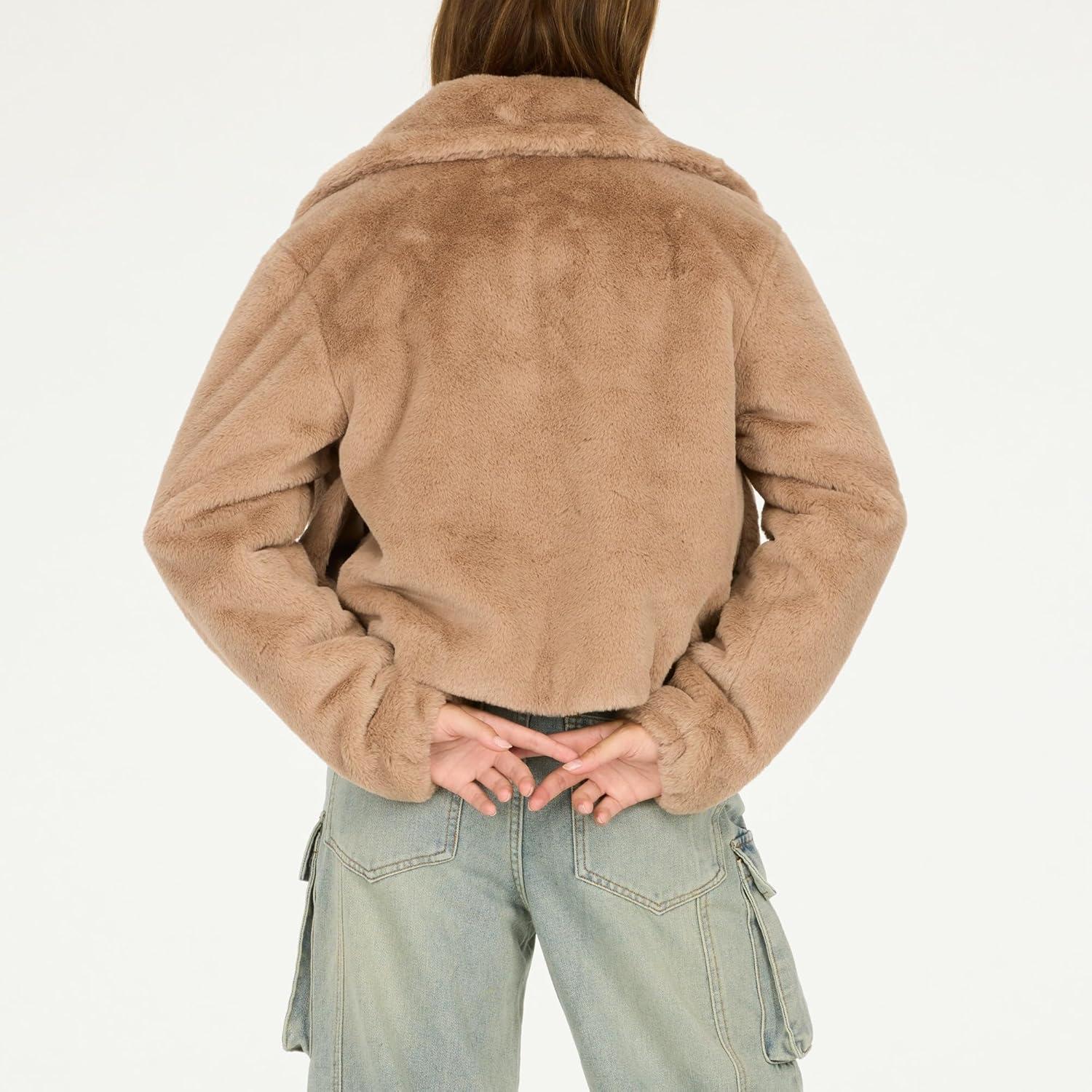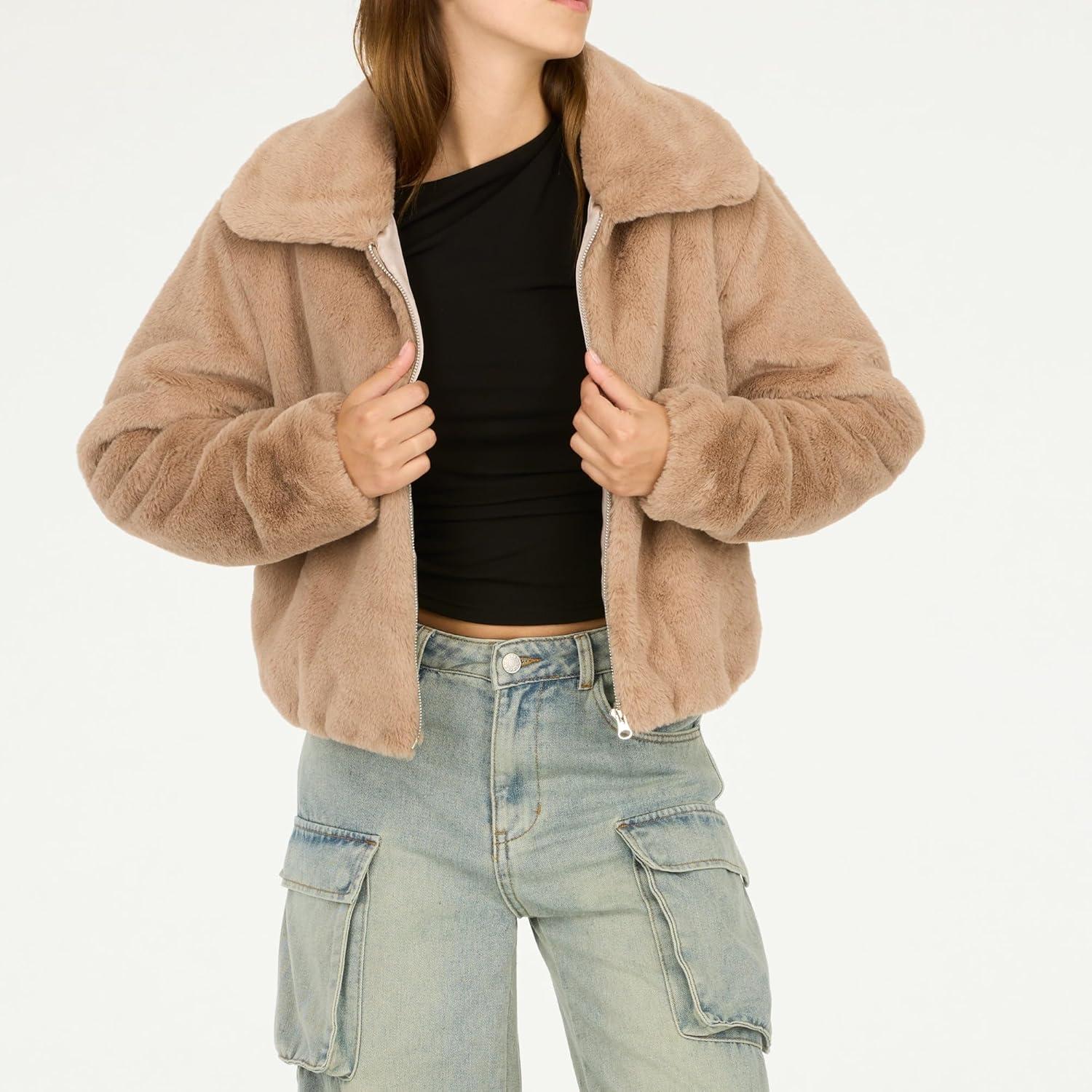 Forever 21 womens Faux Fur Zip Up Jacket(Taupe)
