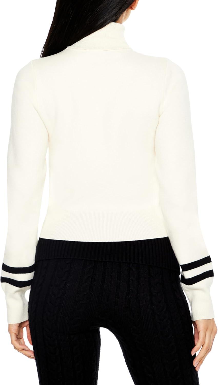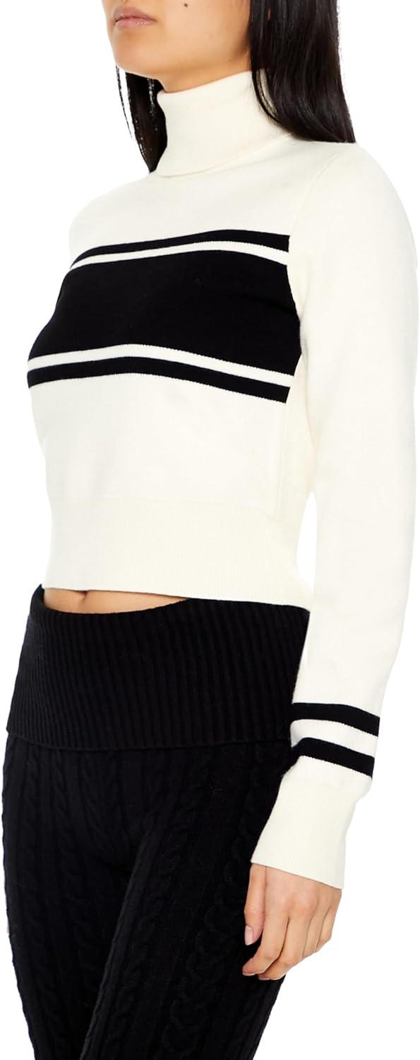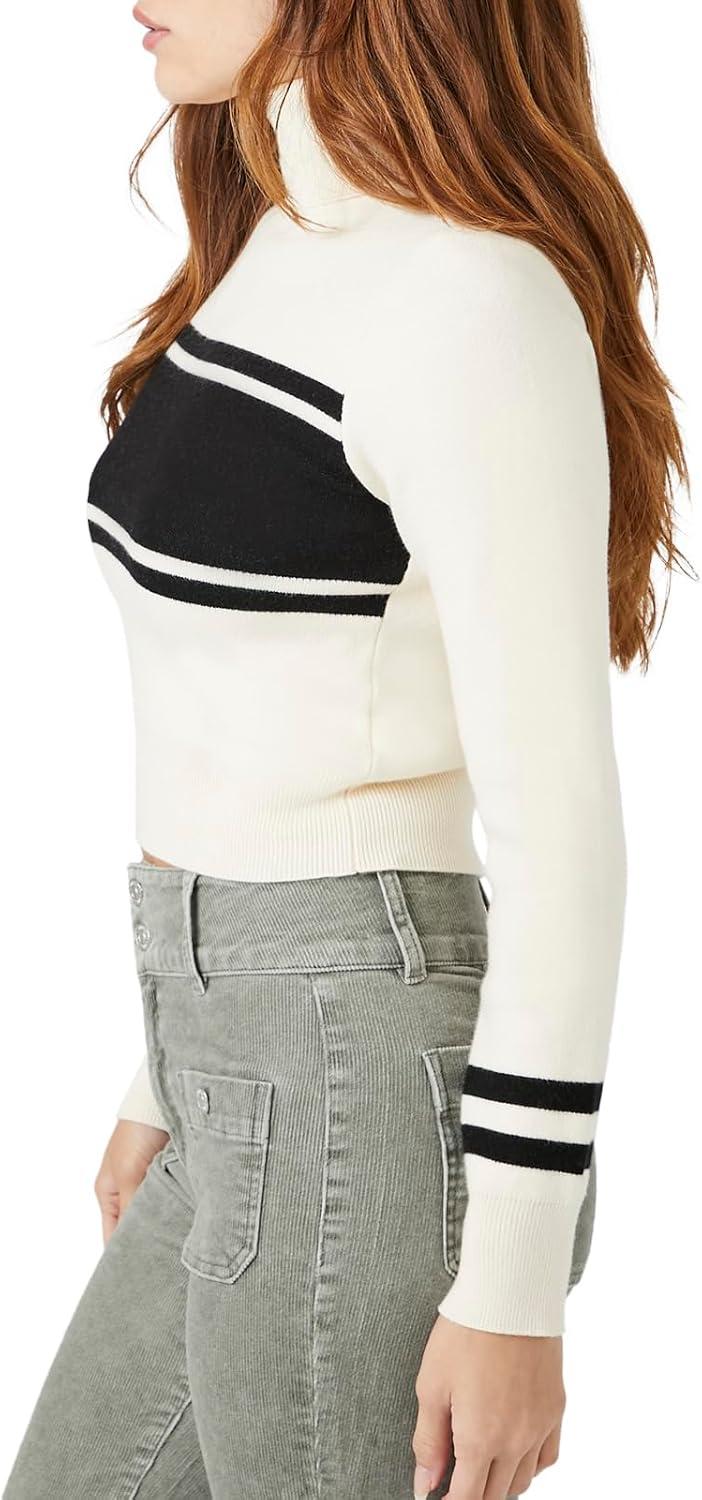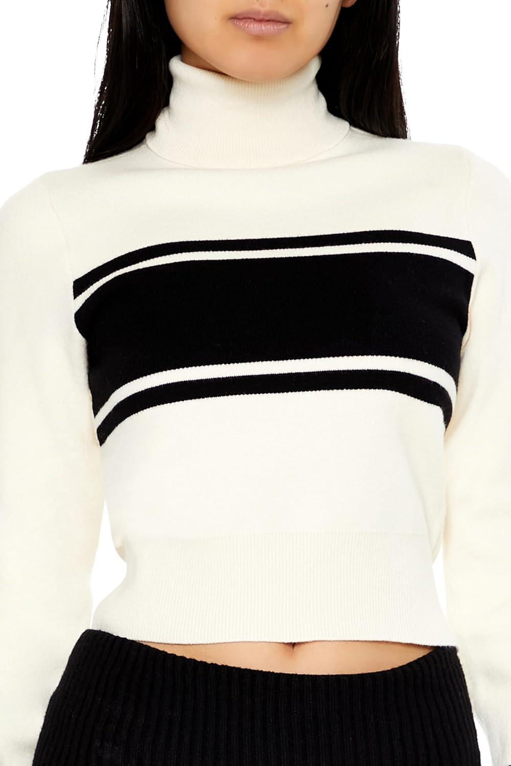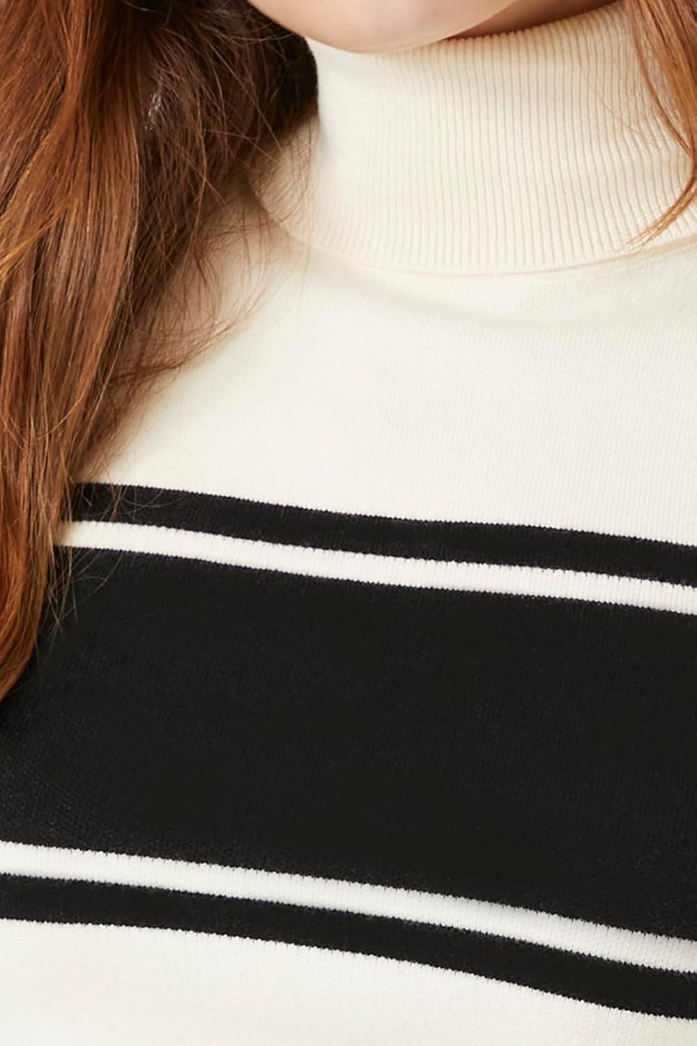 Forever 21 Womens Striped Turtleneck Sweater(Cream)