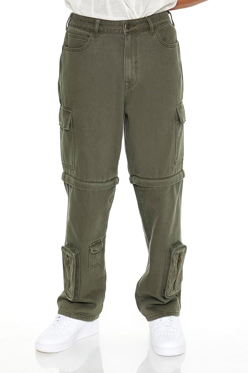 Forever 21 Men’s Convertible Mid-Rise Cargo Jeans(Olive)