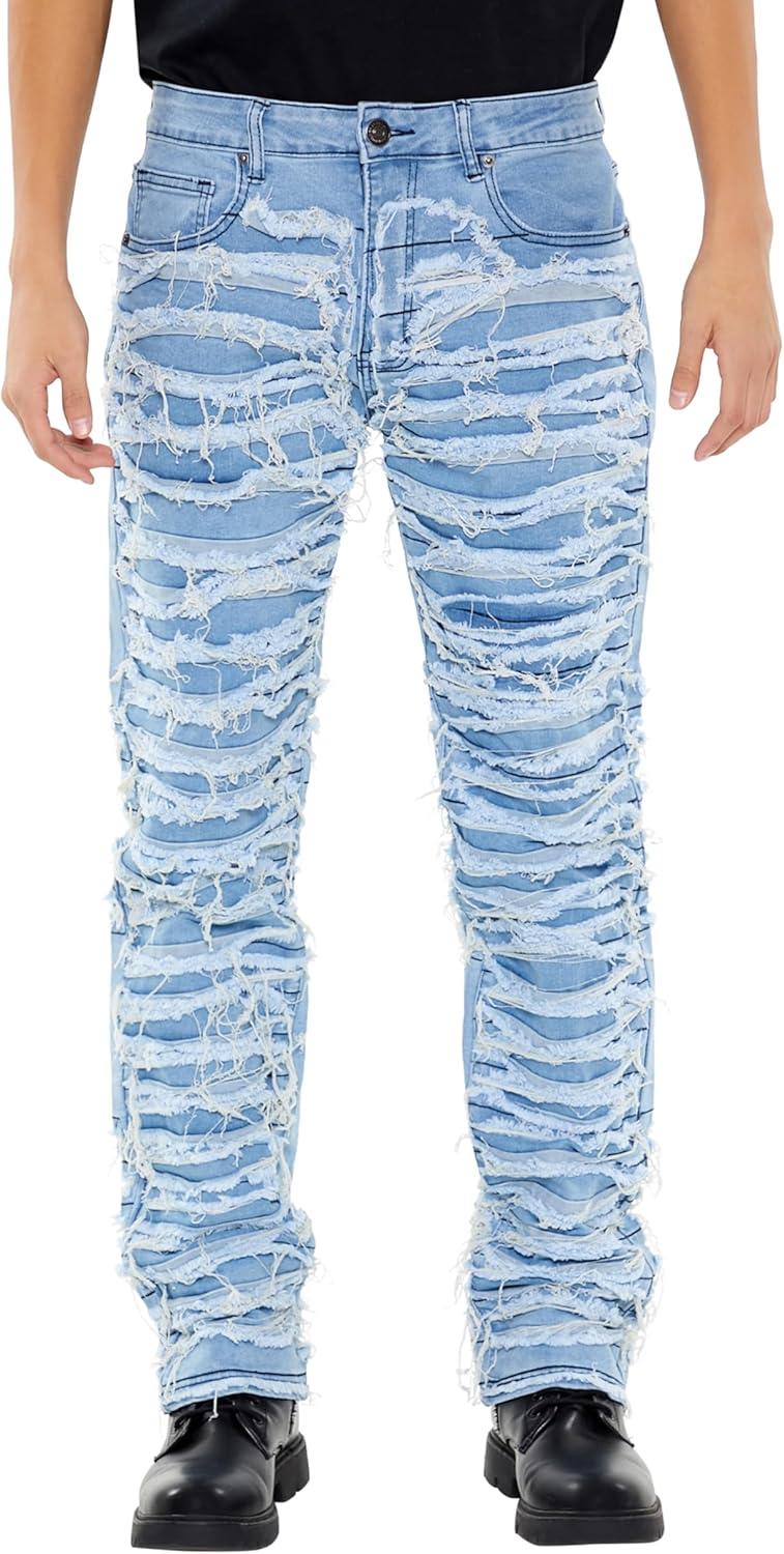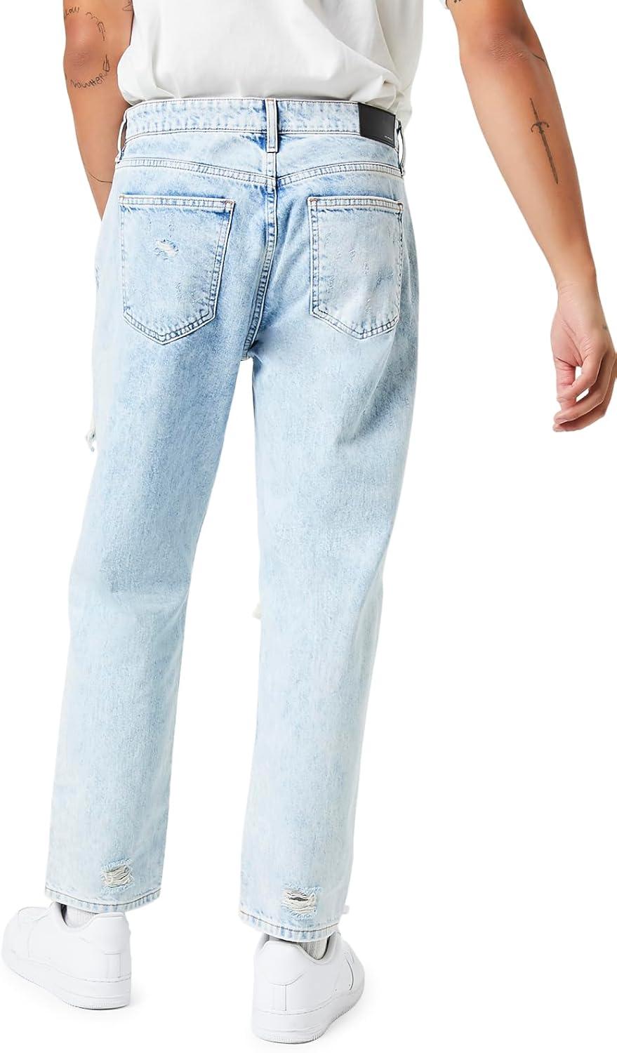 Forever 21 Men’s Distressed Slim-fit Jeans(Light Denim)