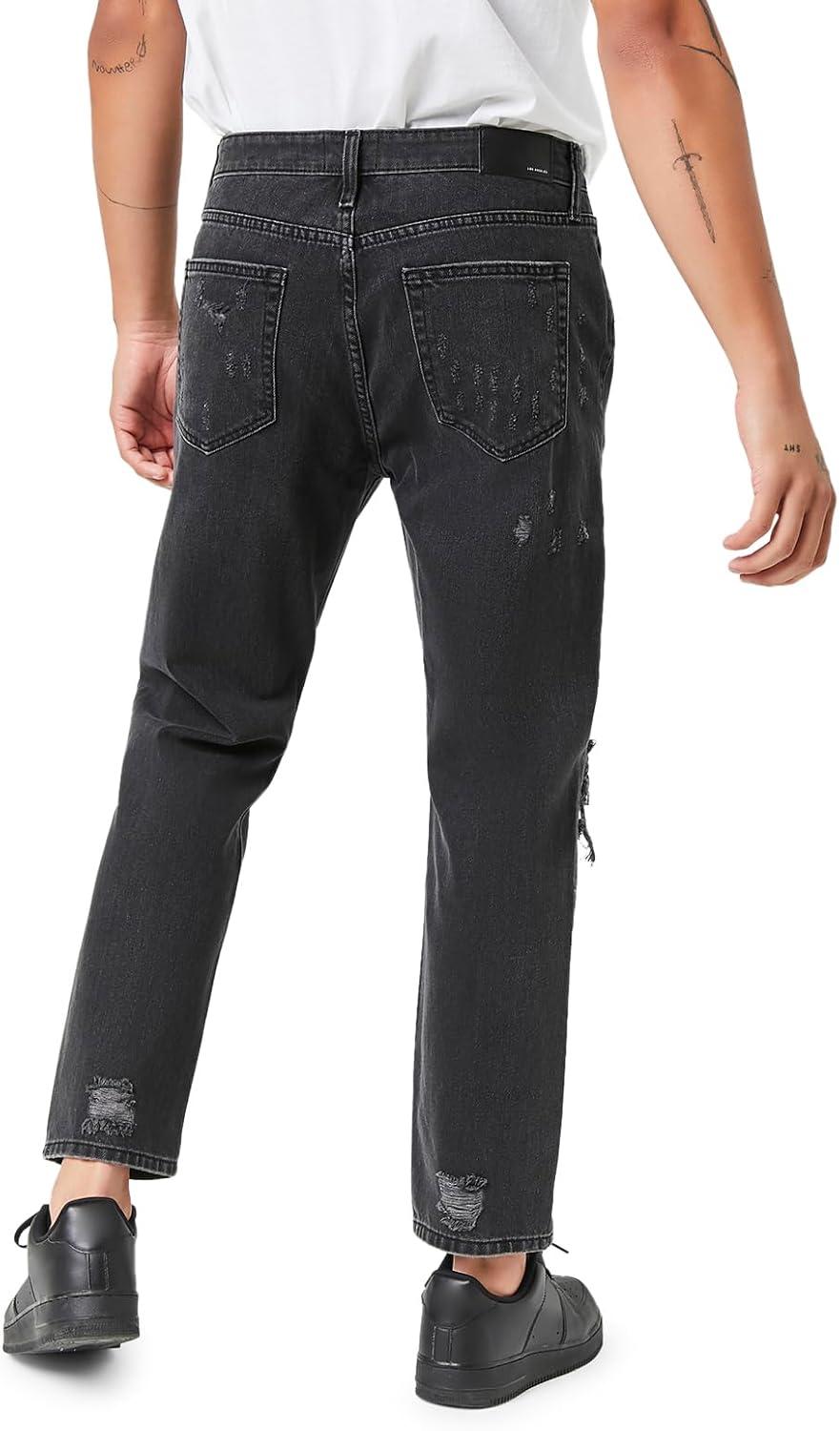 Forever 21 Men’s Distressed Slim-fit Jeans(Washed Black)
