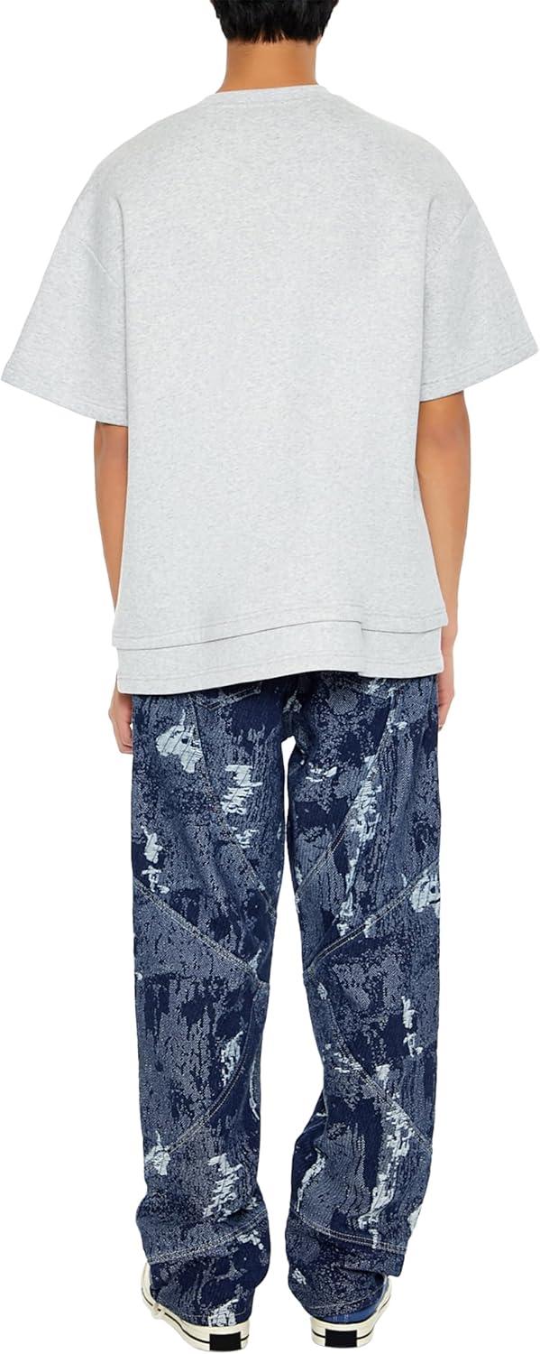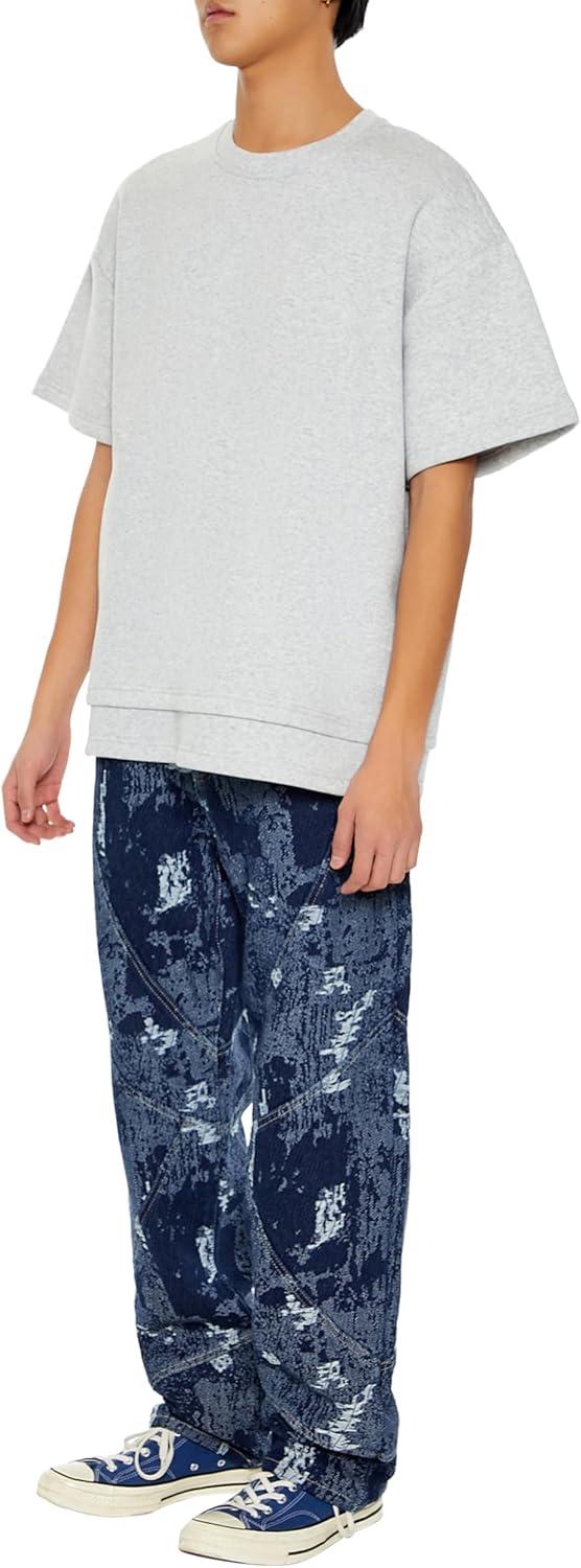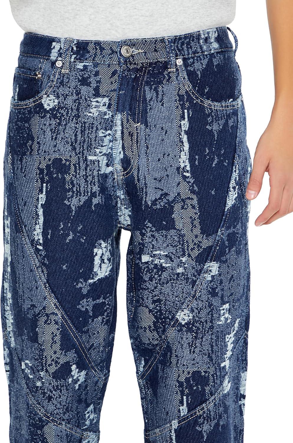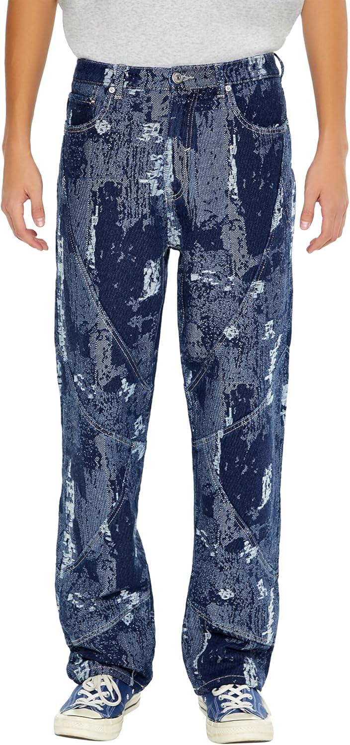Forever 21 Men’s Jacquard Abstract Mid-Rise Jeans(Dark Denim/Multi)