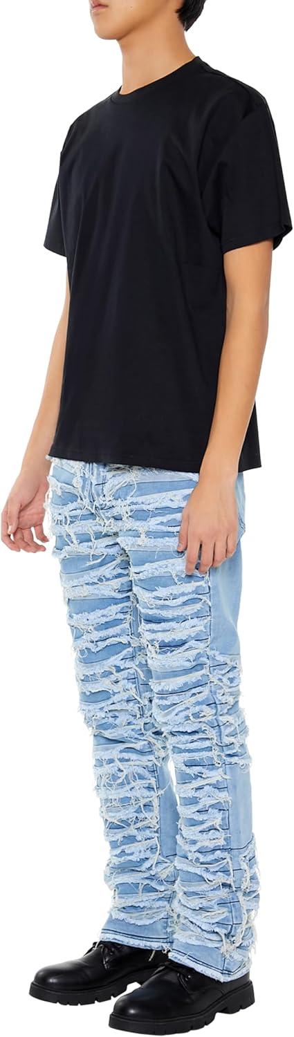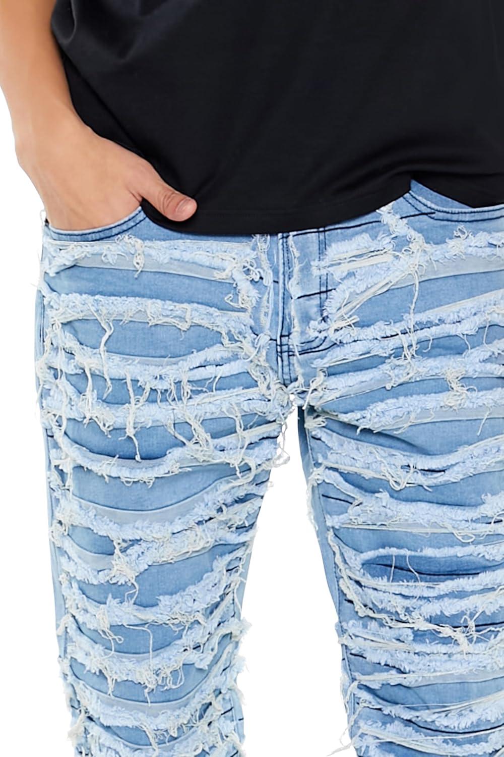Forever 21 Men’s Frayed Slim-fit Mid-Rise Jeans(Light Denim)