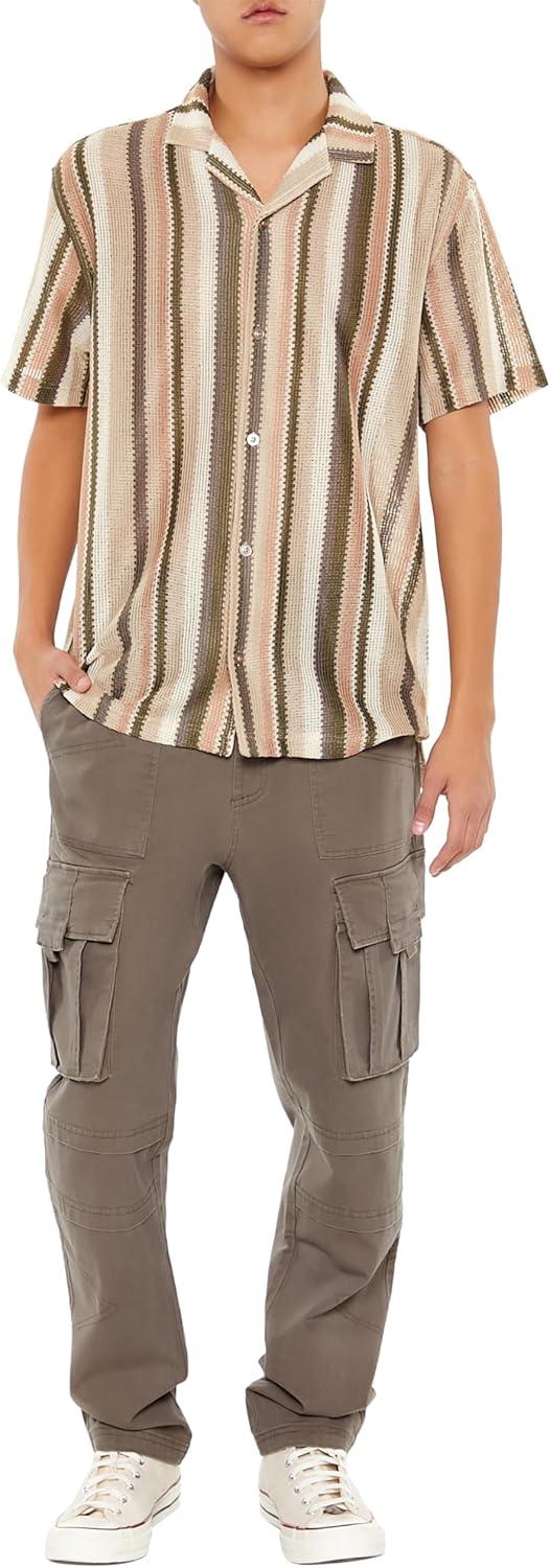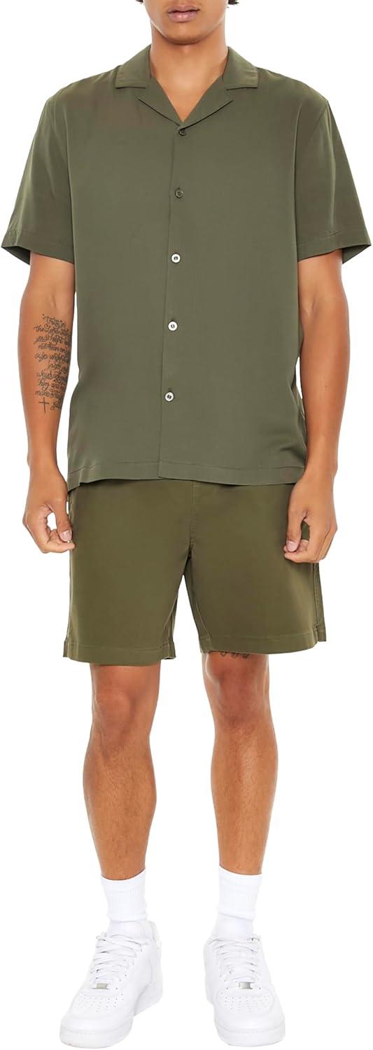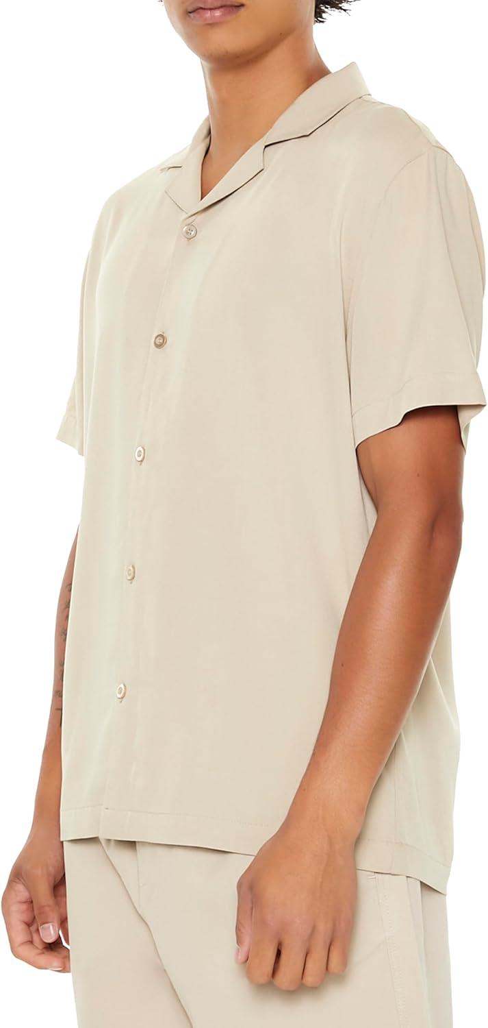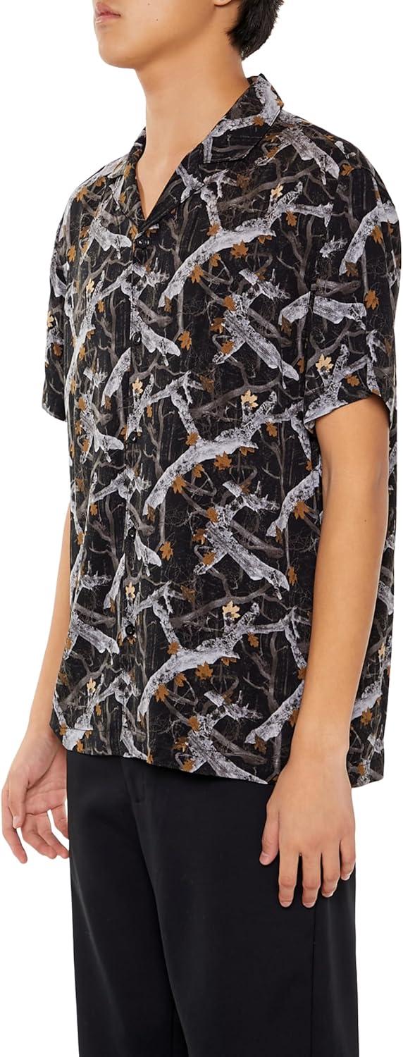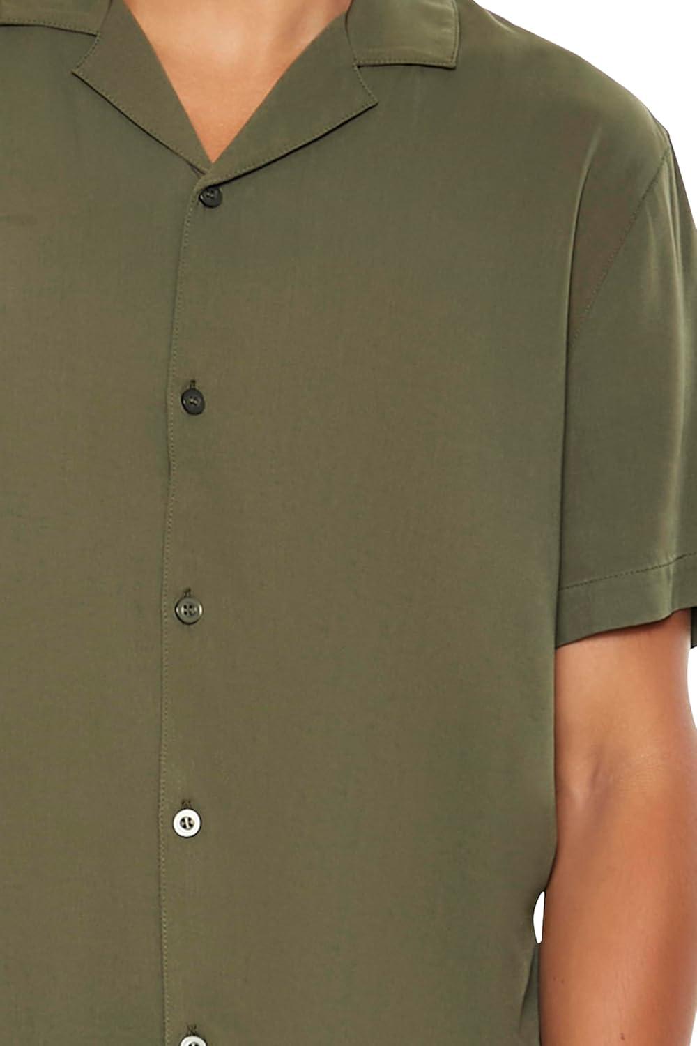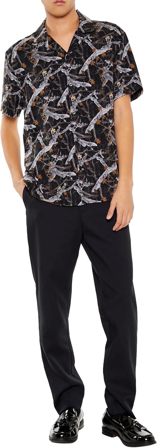 Forever 21 Men’s Camo Print Cuban Collar Shirt(Green)