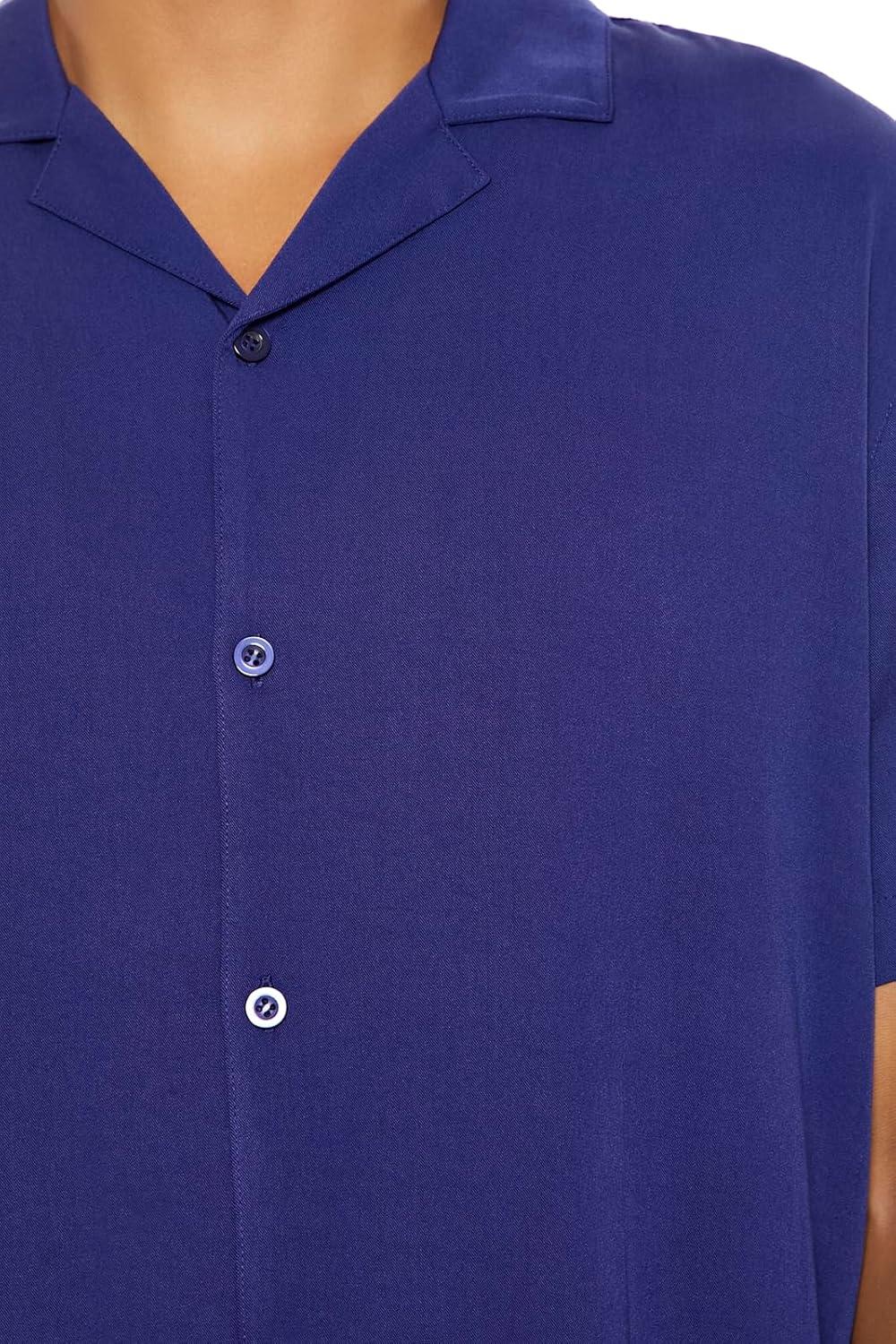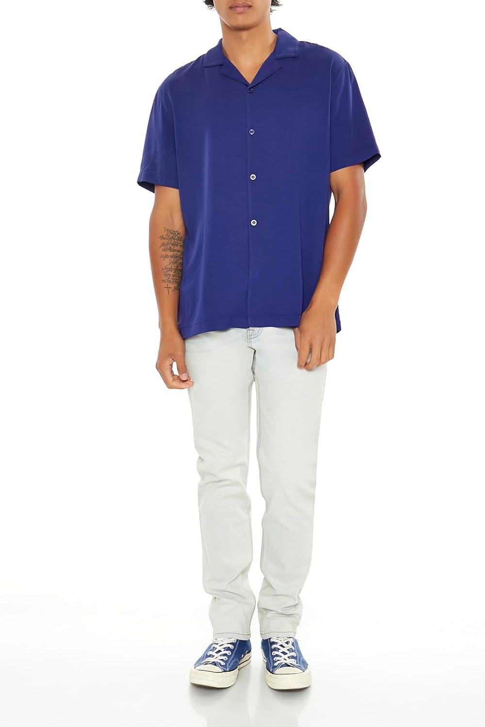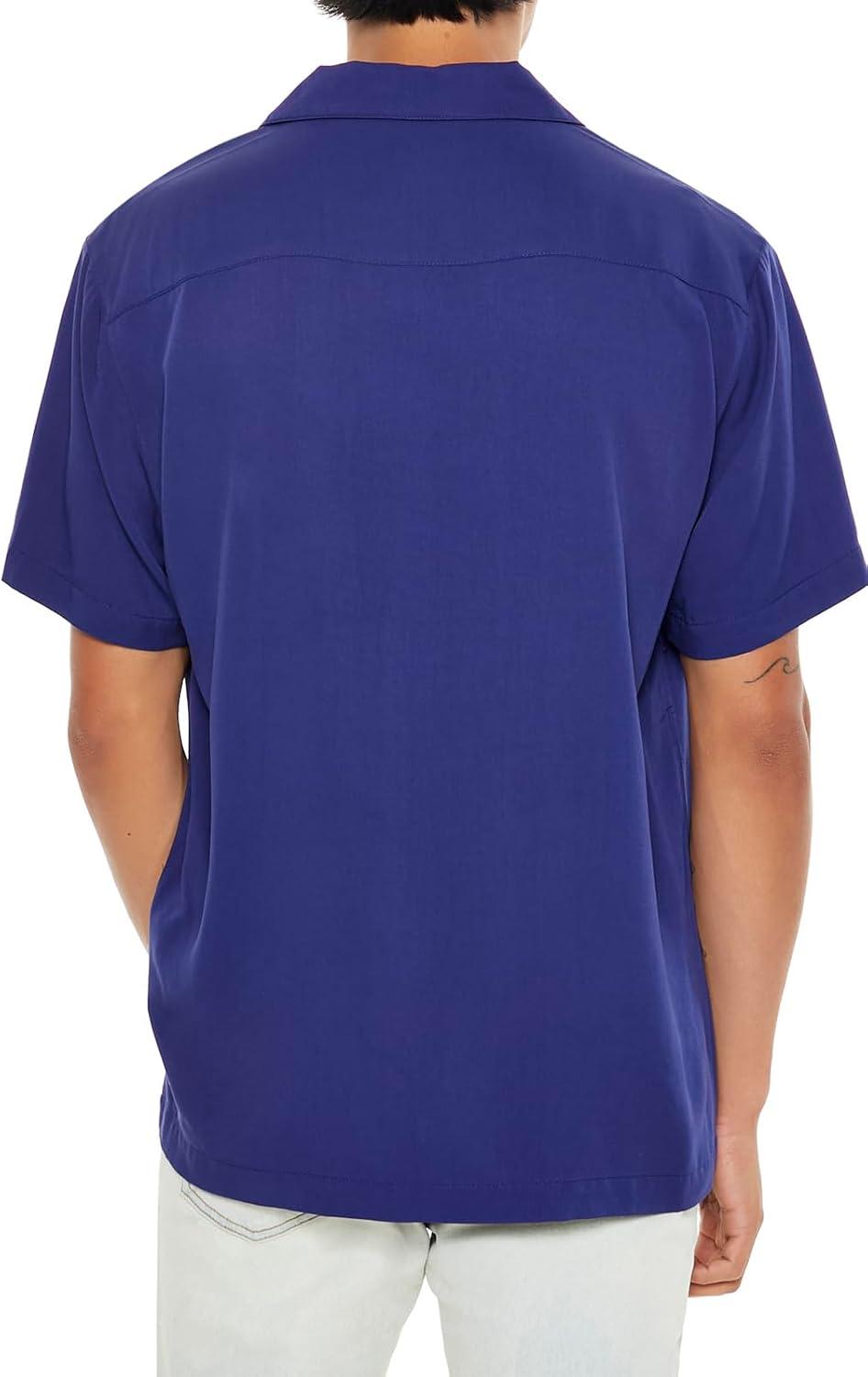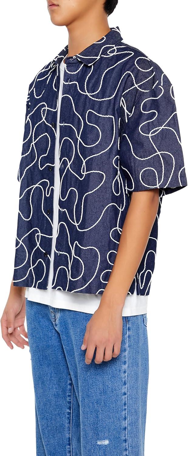 Forever 21 Men’s Cropped Chain-Stitched Embroidered Shirt(Blue)