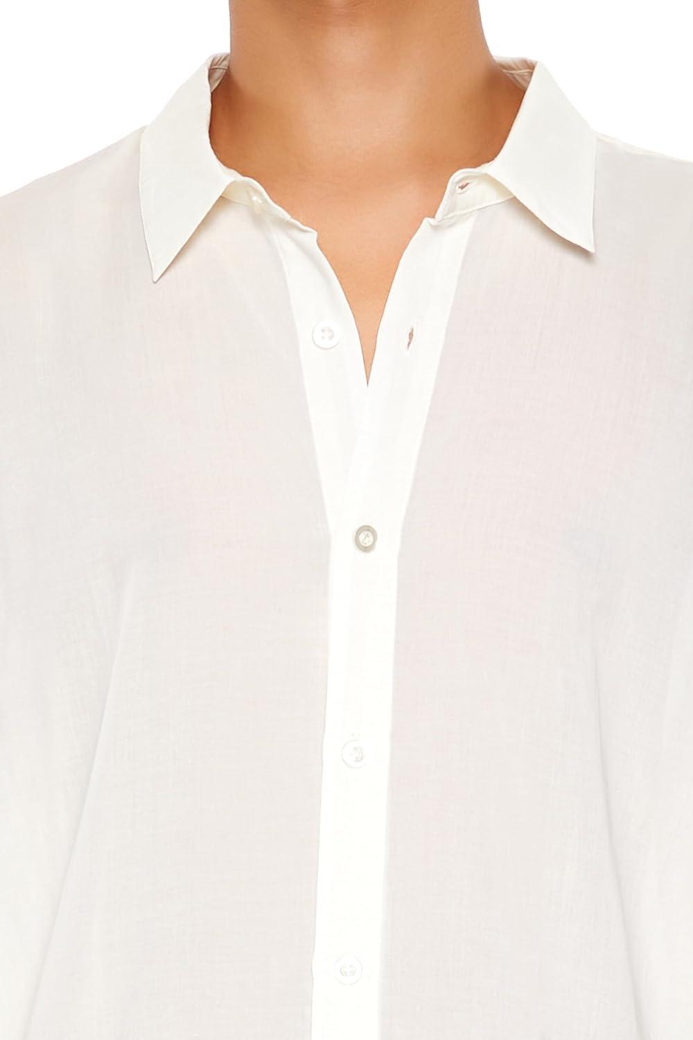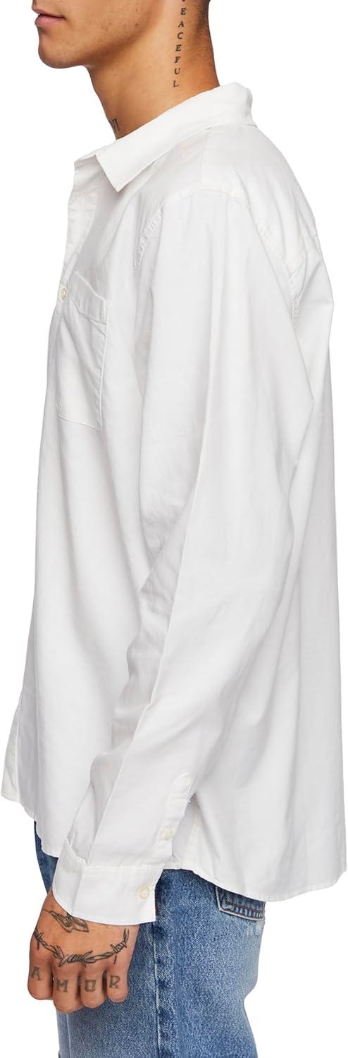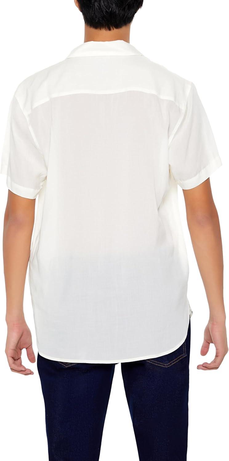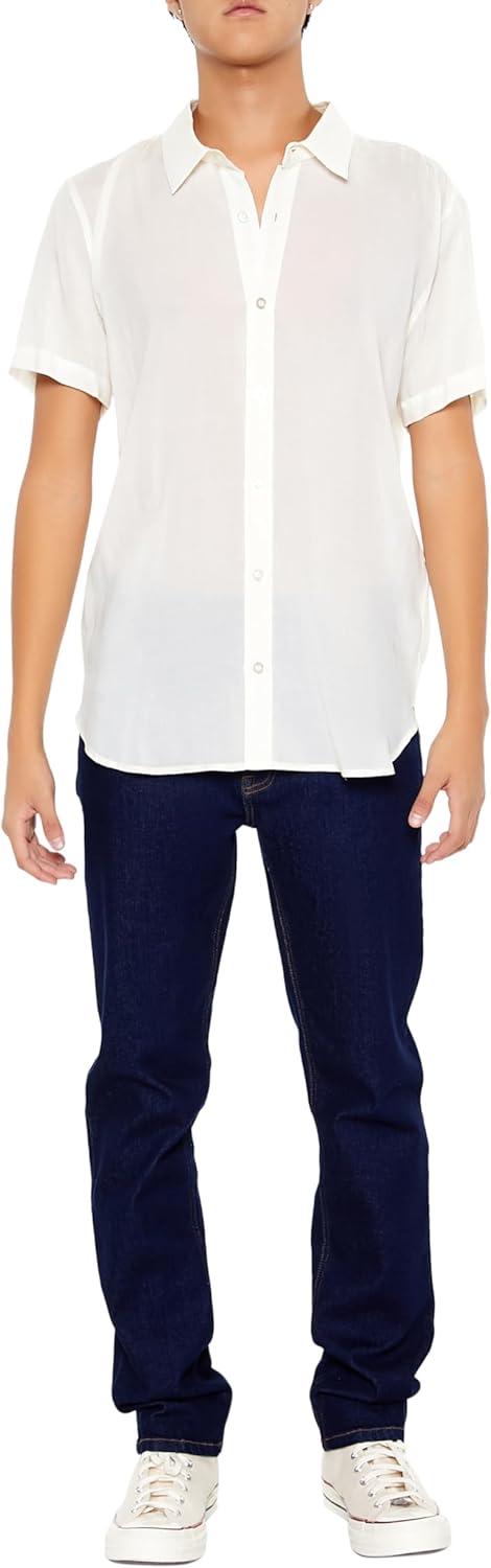 Forever 21 Men’s Cropped Chain-Stitched Embroidered Shirt(Blue)