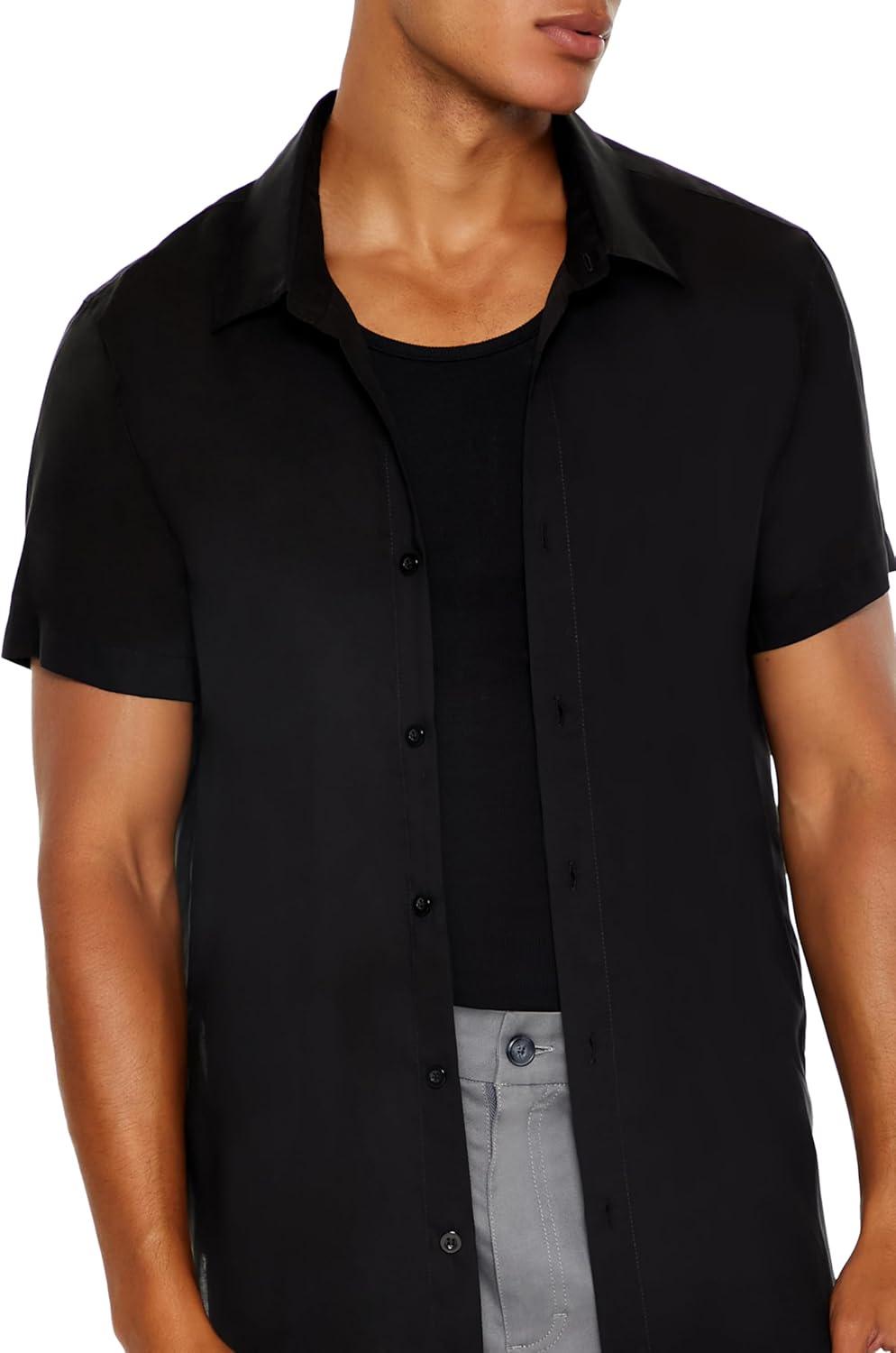 Forever 21 Men’s Colorblock Rayon Paisley Shirt(Black)