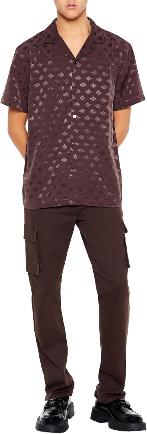 Forever 21 Men’s Jacquard Baroque Shirt(Brown)