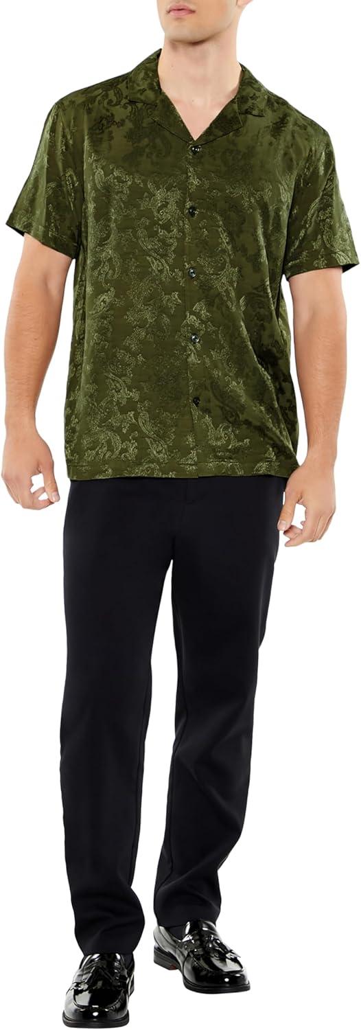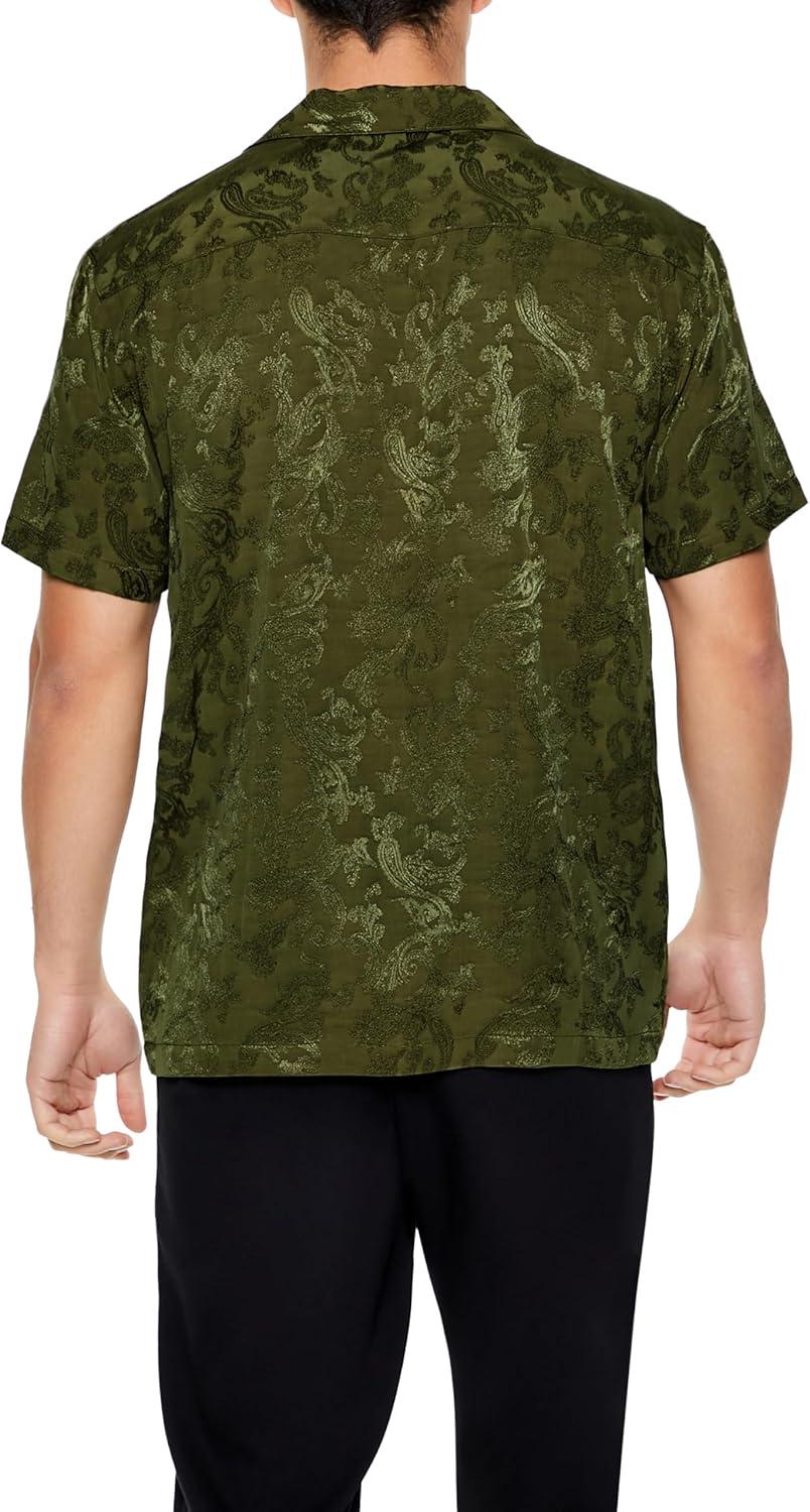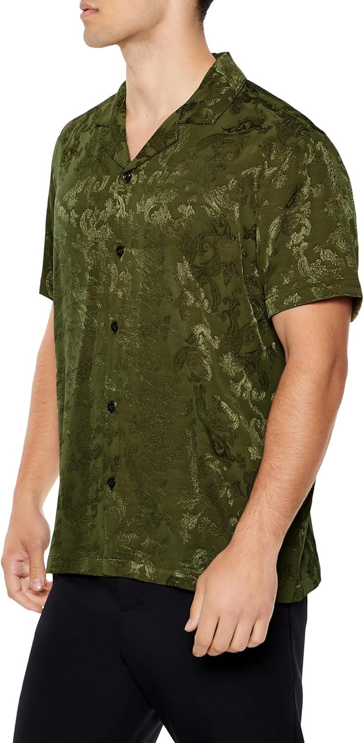Forever 21 Men’s Jacquard Paisley Shirt(Green)