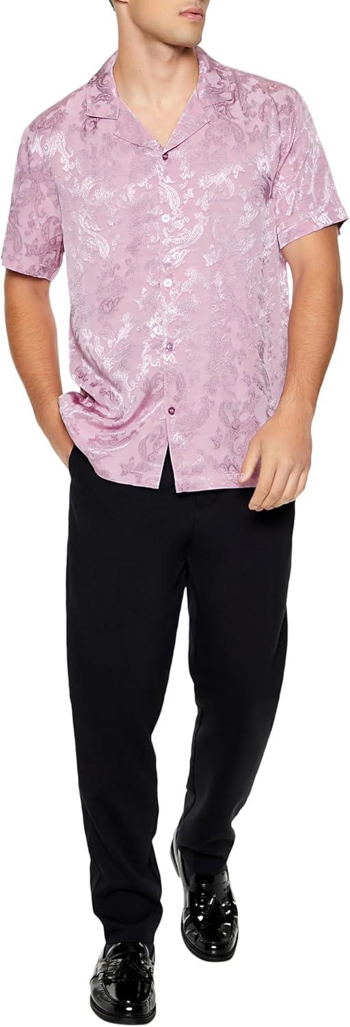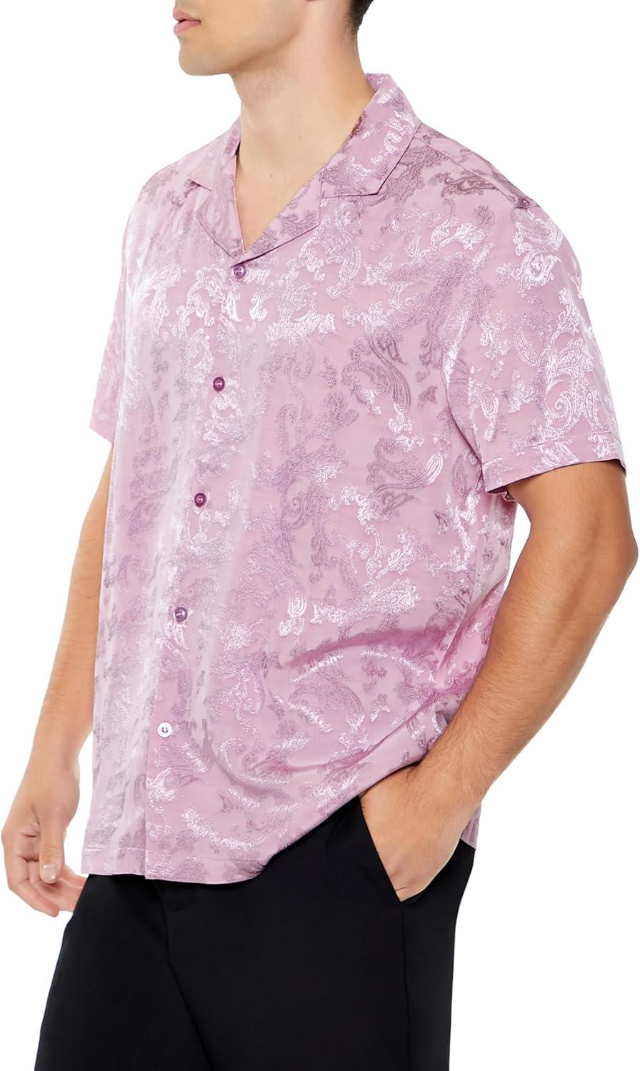 Forever 21 Men’s Jacquard Paisley Shirt(Purple)