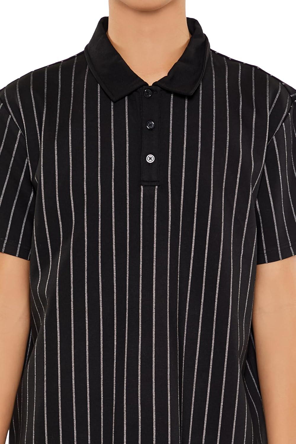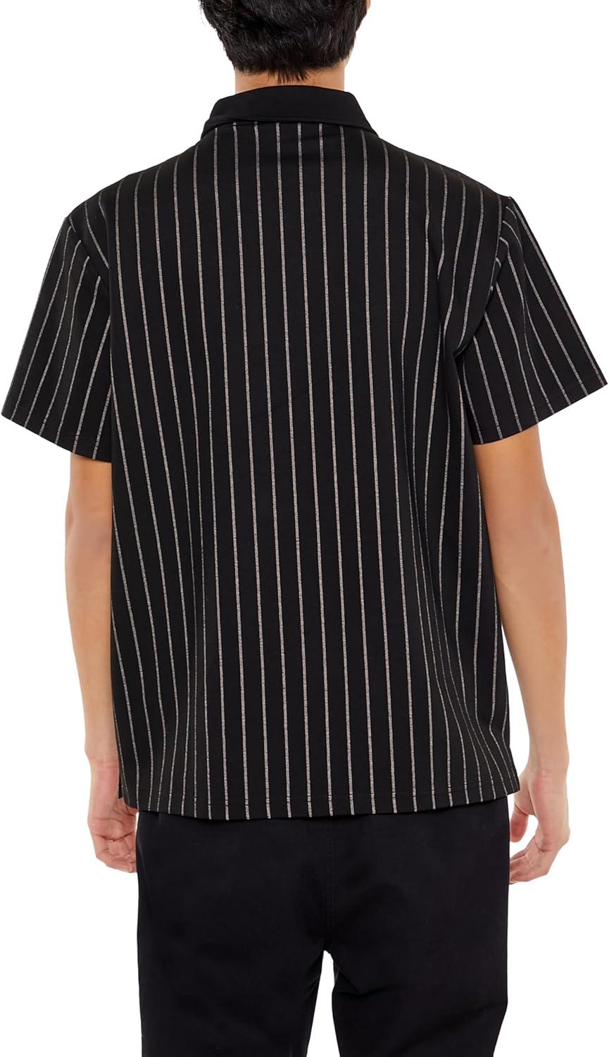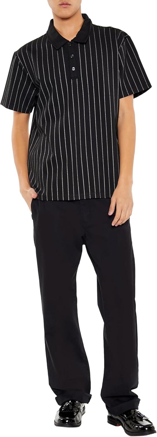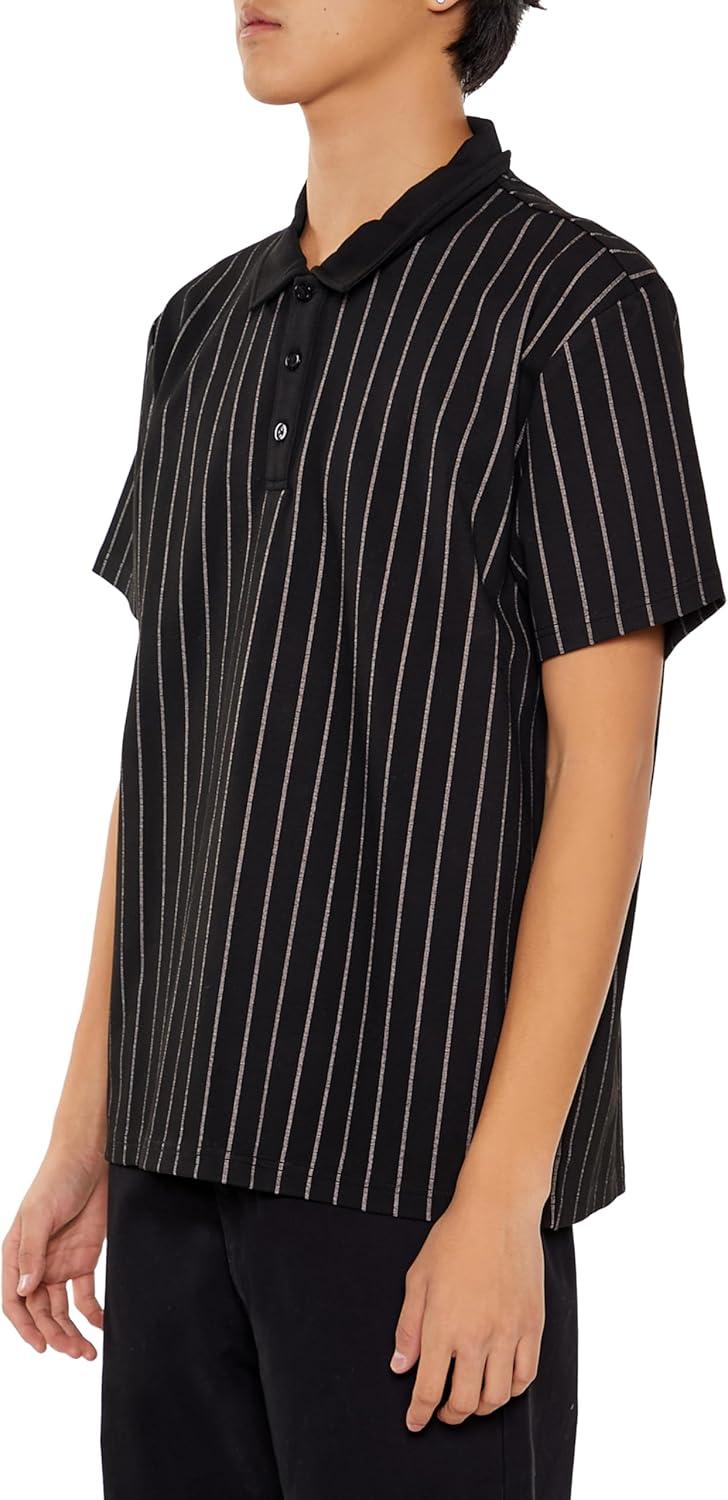 Forever 21 Men’s Pinstriped Polo Shirt(Black)