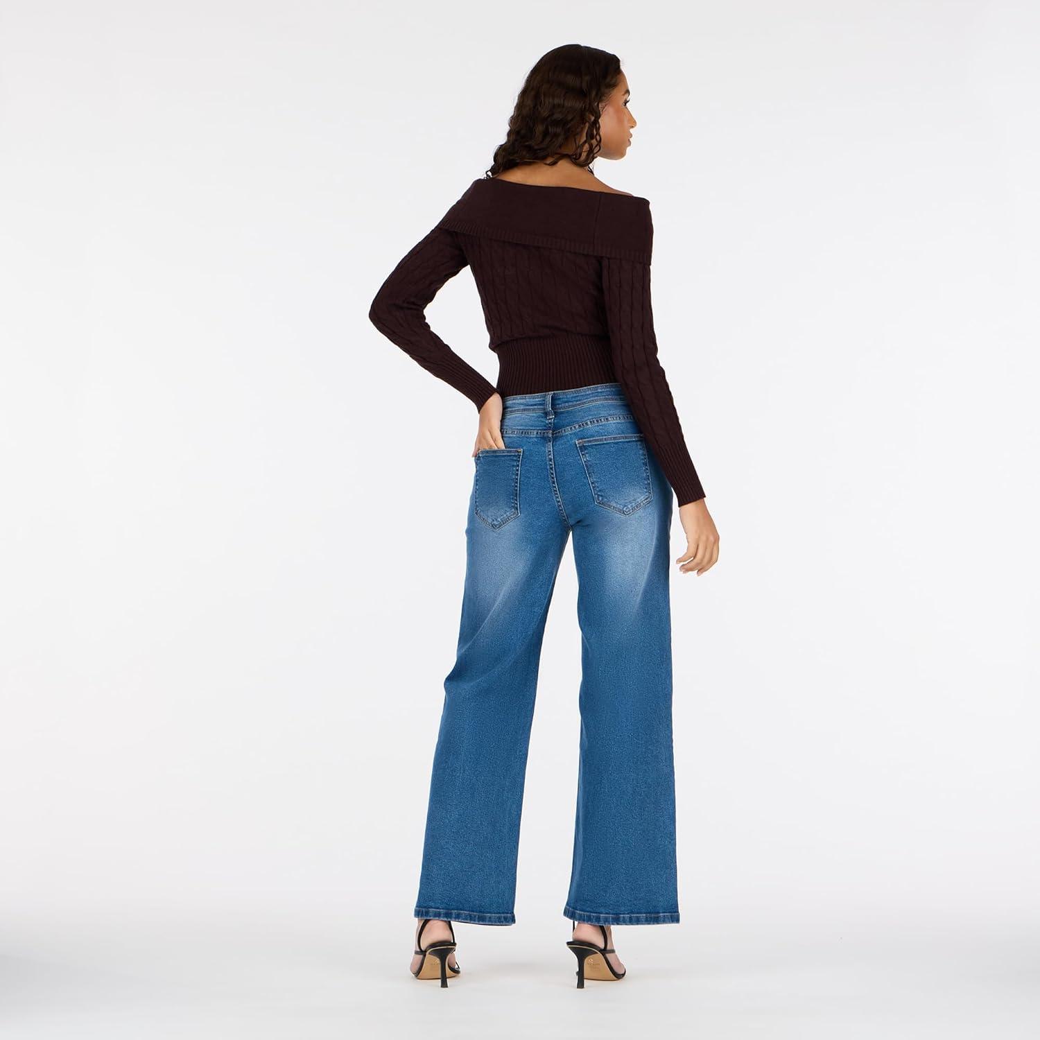Forever 21 Womens Low Waist Heart Patch Wide Leg Jeans(Blue)