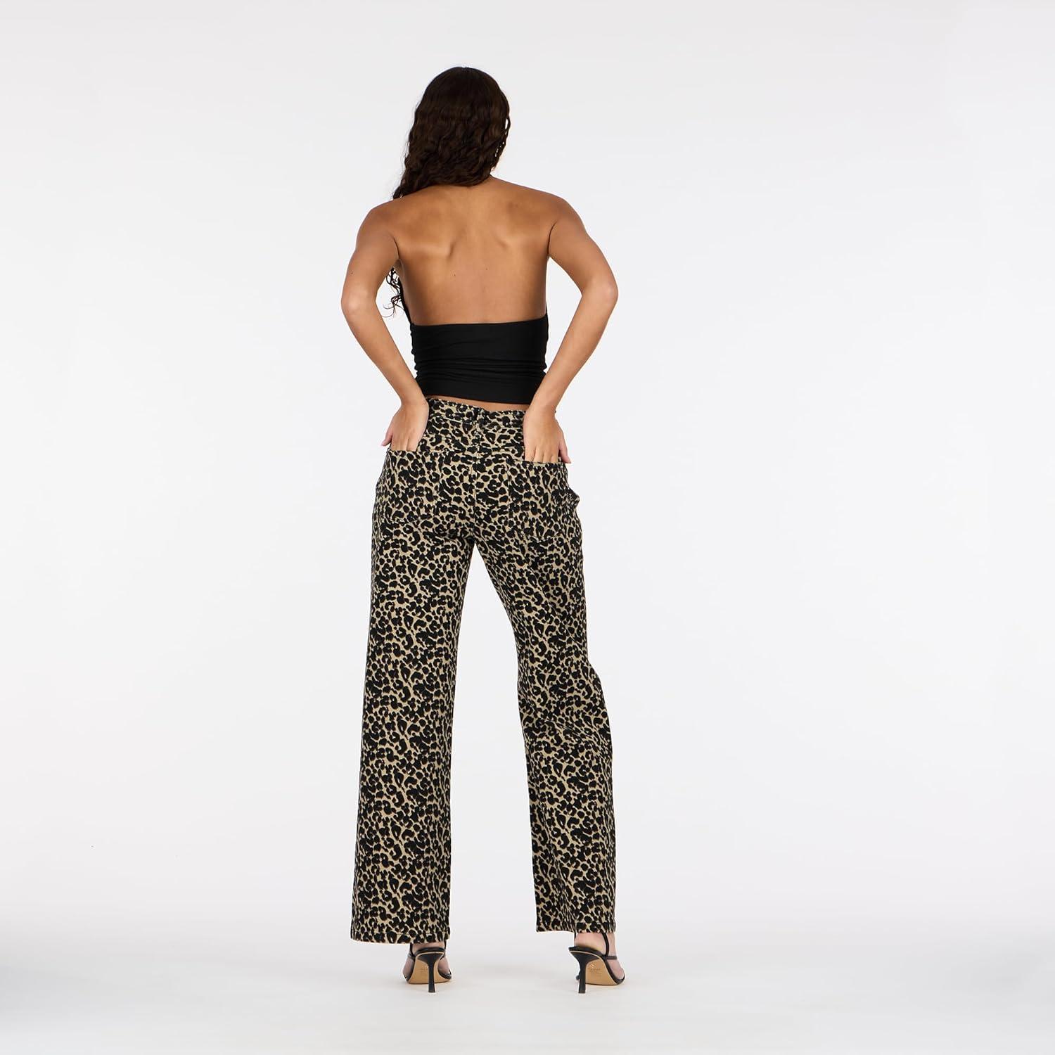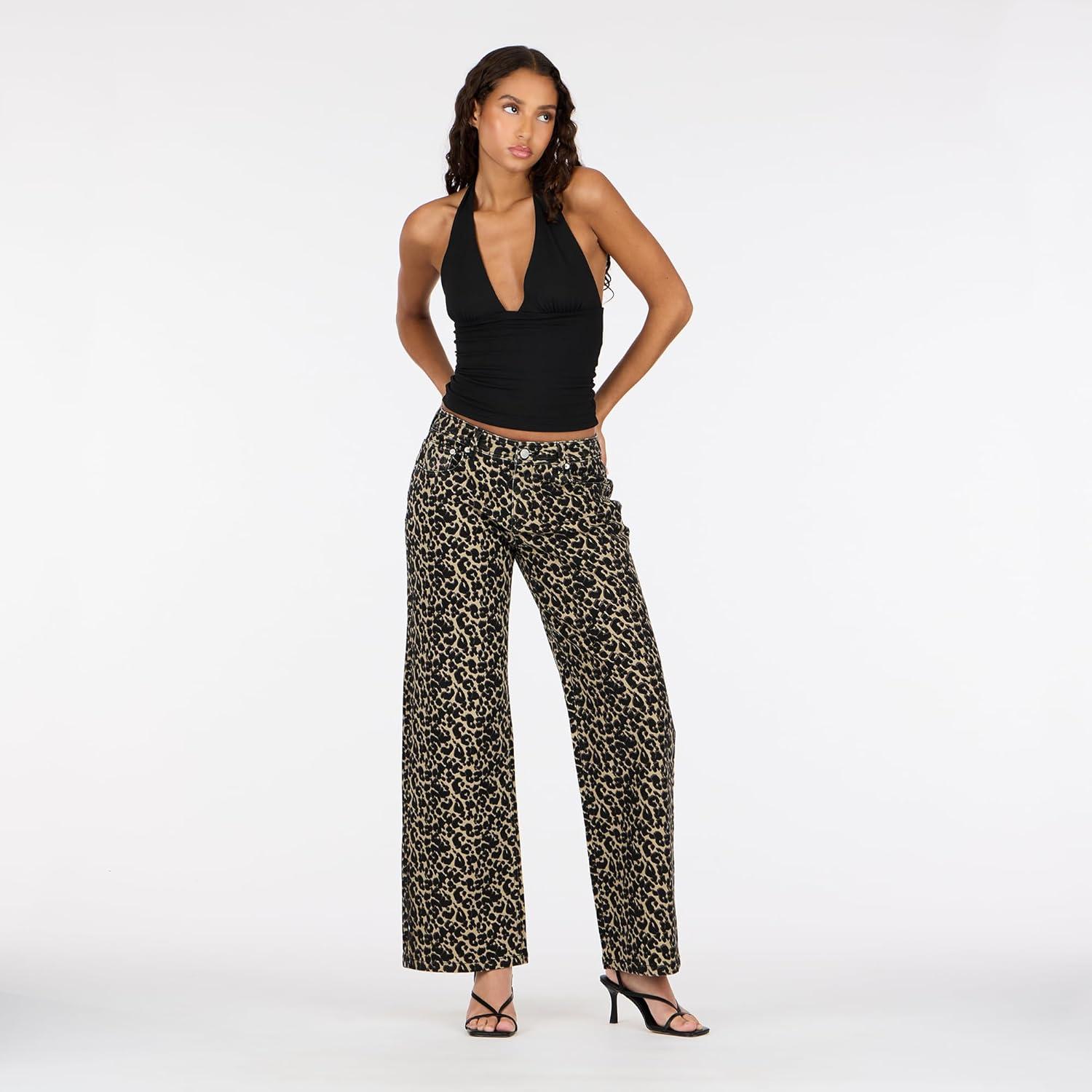 Forever 21 Womens Low Rise Baggy Stretch Denim(Leopard)