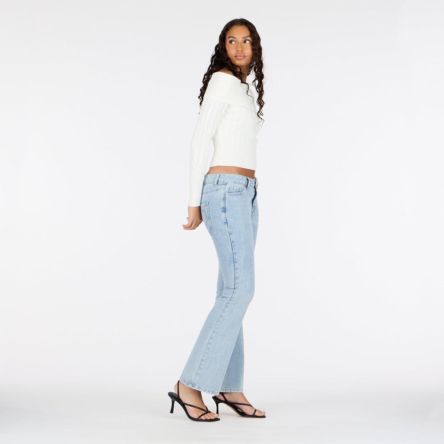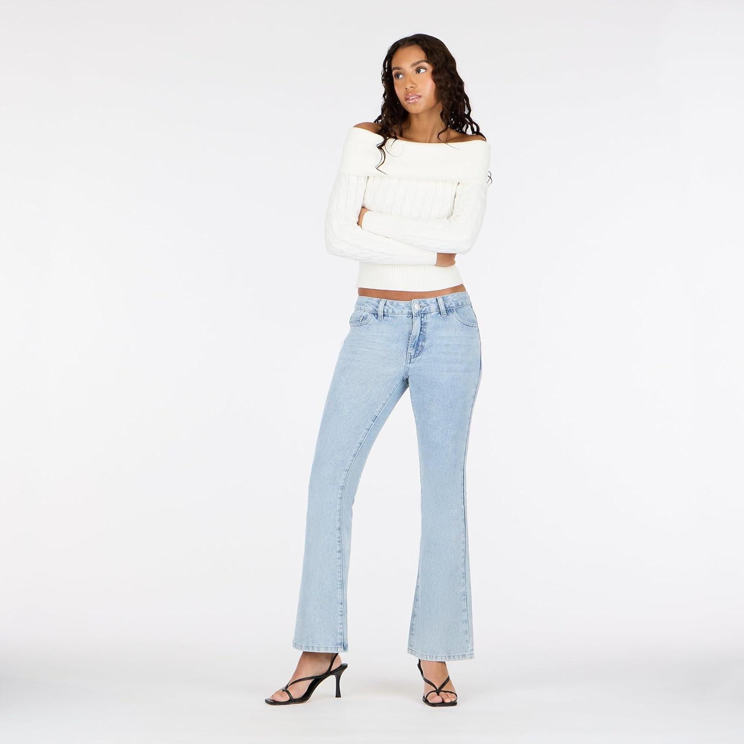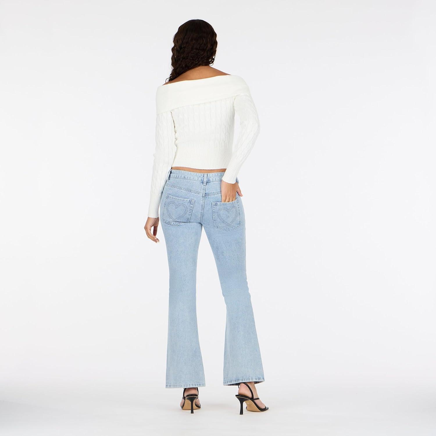 Forever 21 Womens Low Rise Heart Stitch Flare Jeans(Light Blue)