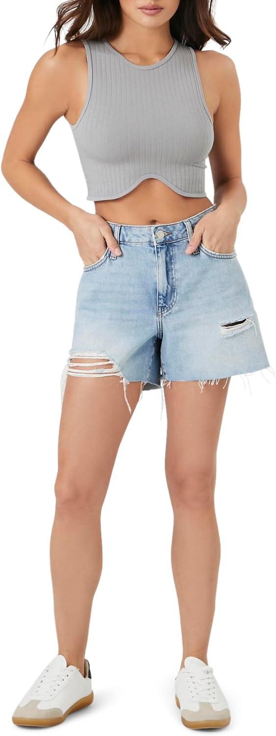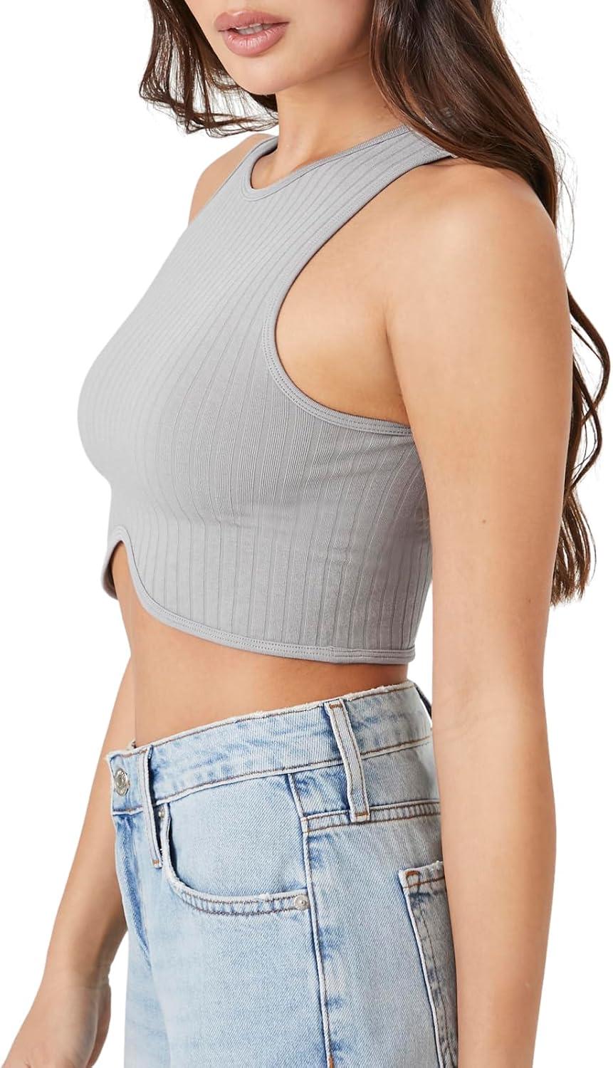 Forever 21 Women’s Seamless Ribbed Crop Top(Grey)