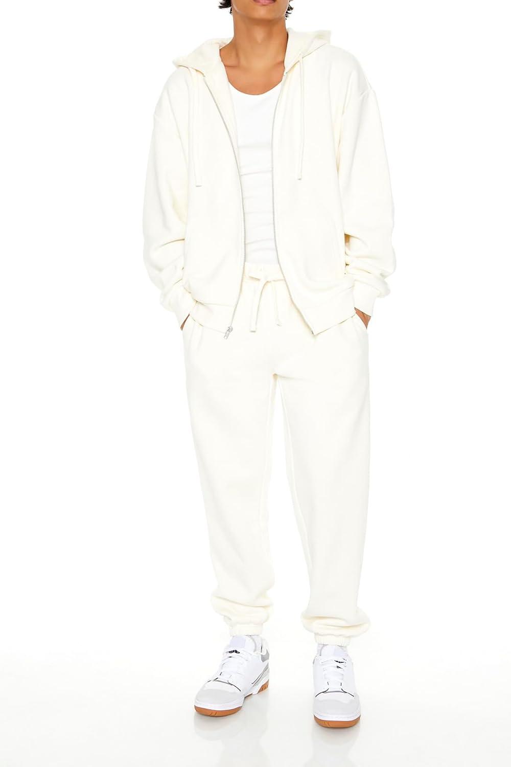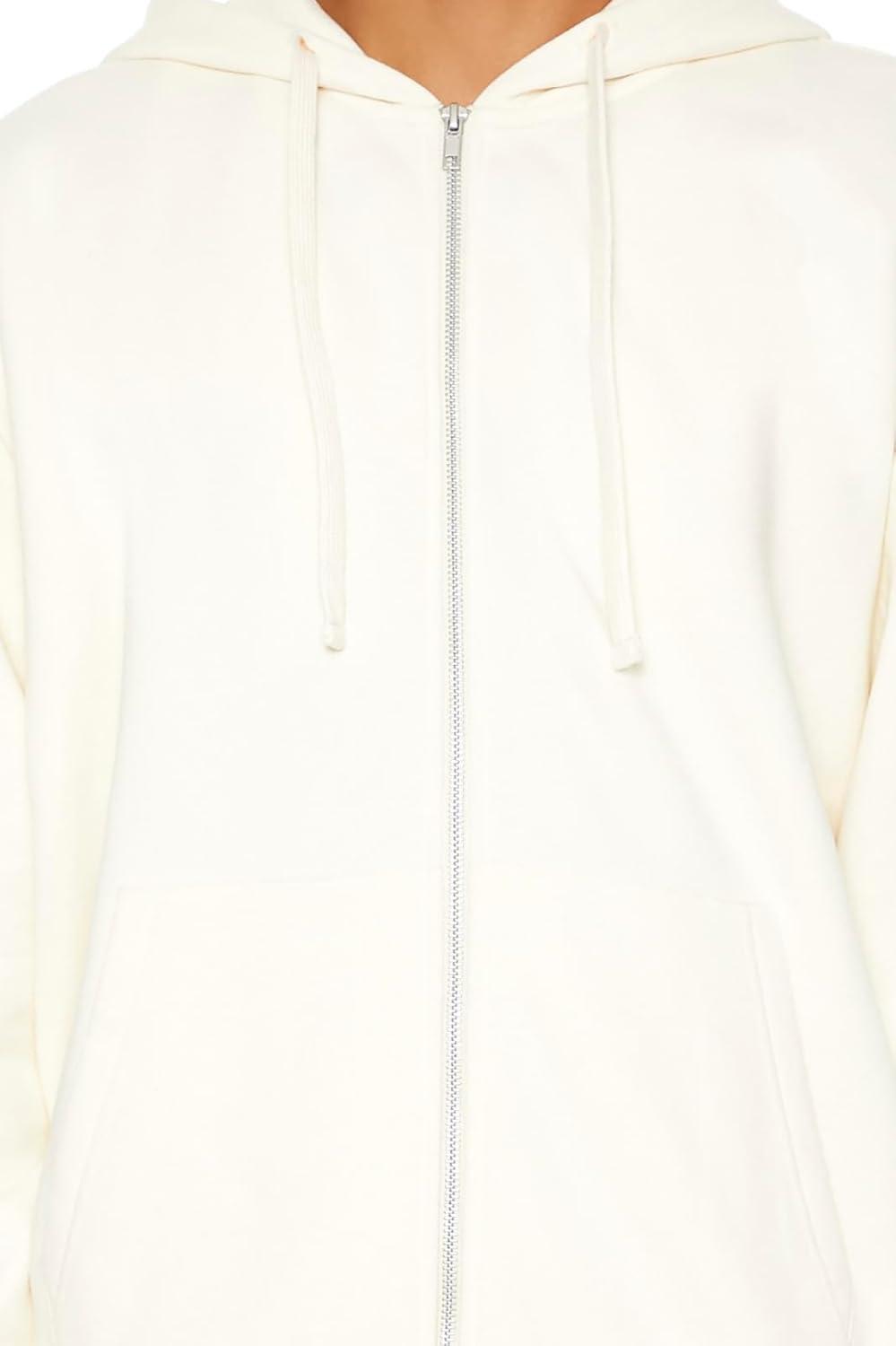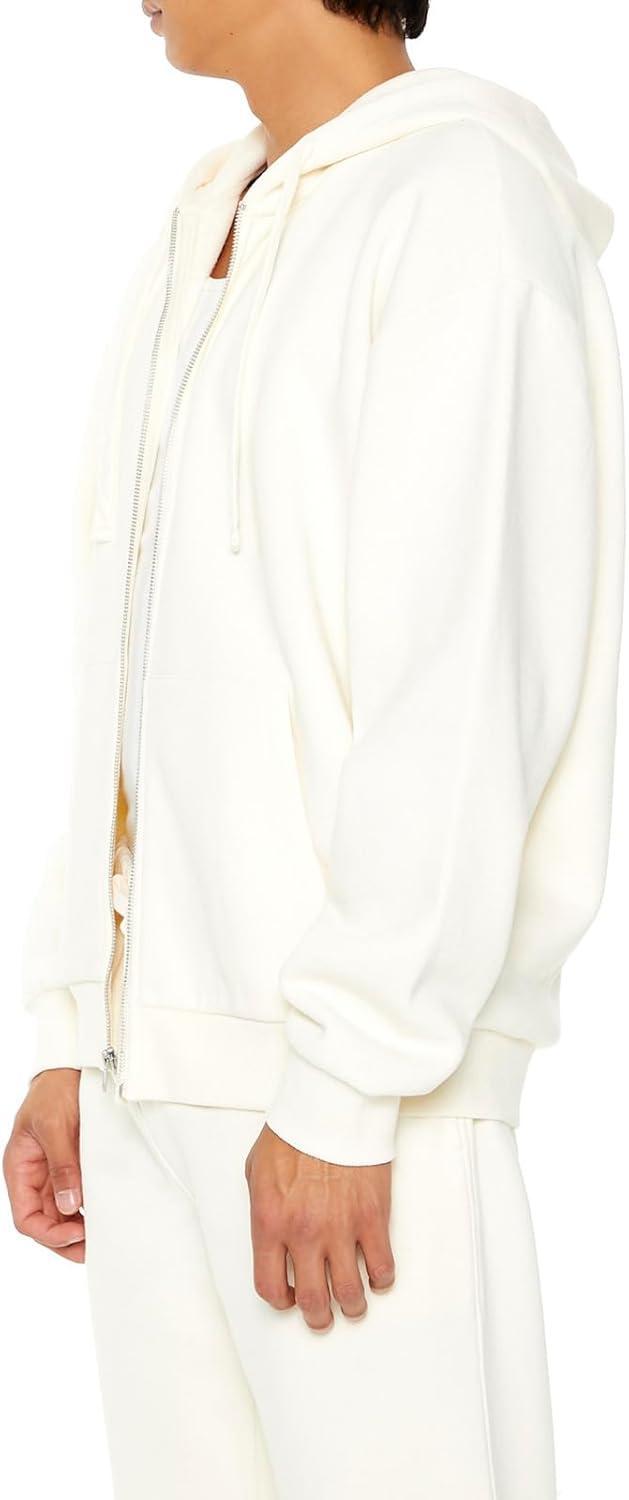 Forever 21 Men’s Zip-up Drawstring Hoodie(Cream)