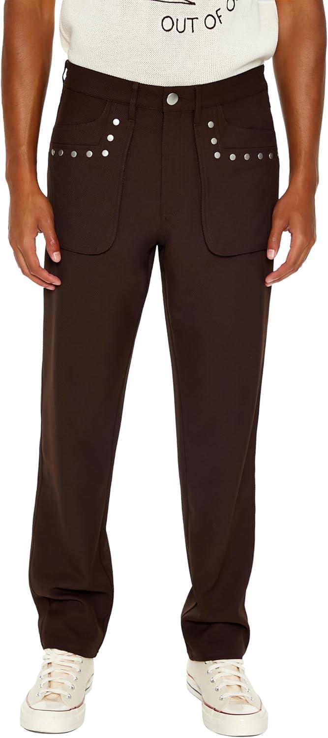 Forever 21 Men’s Studded Slim-fit Mid-Rise Pants(Cocoa)
