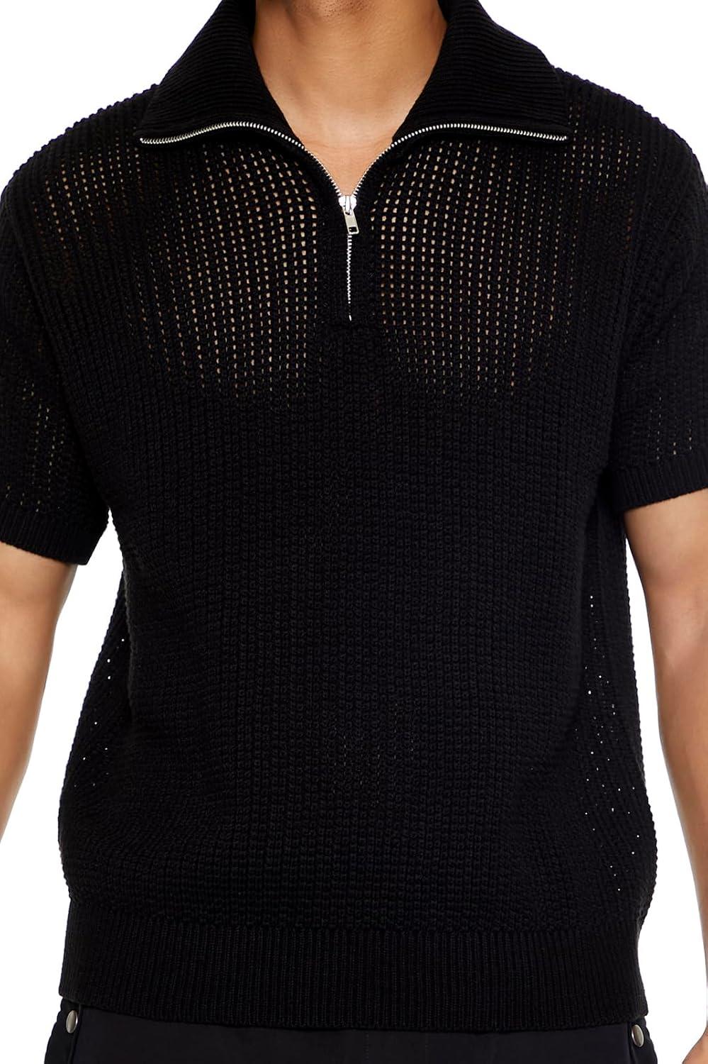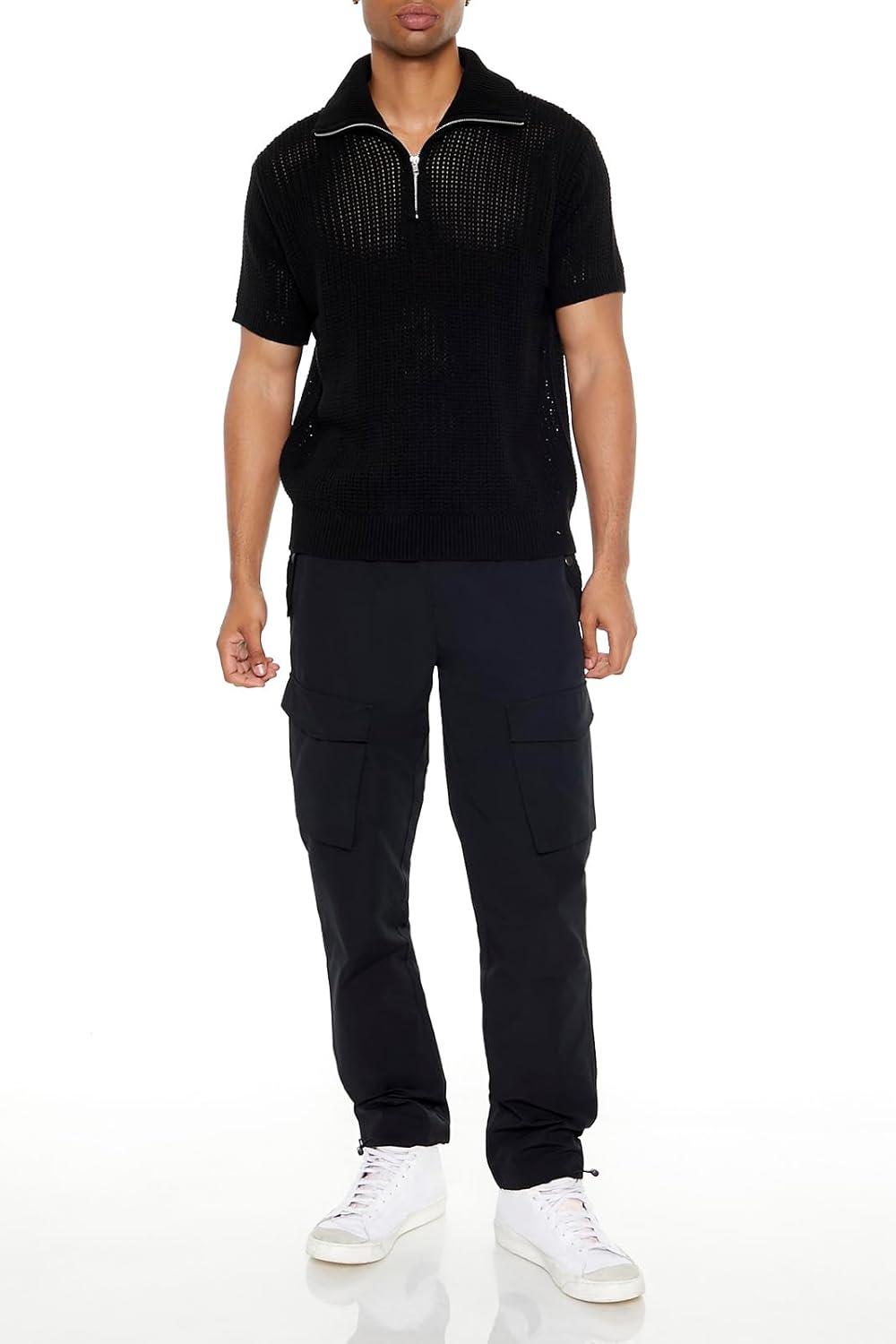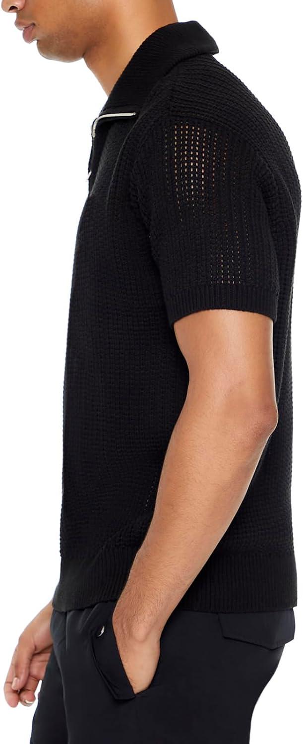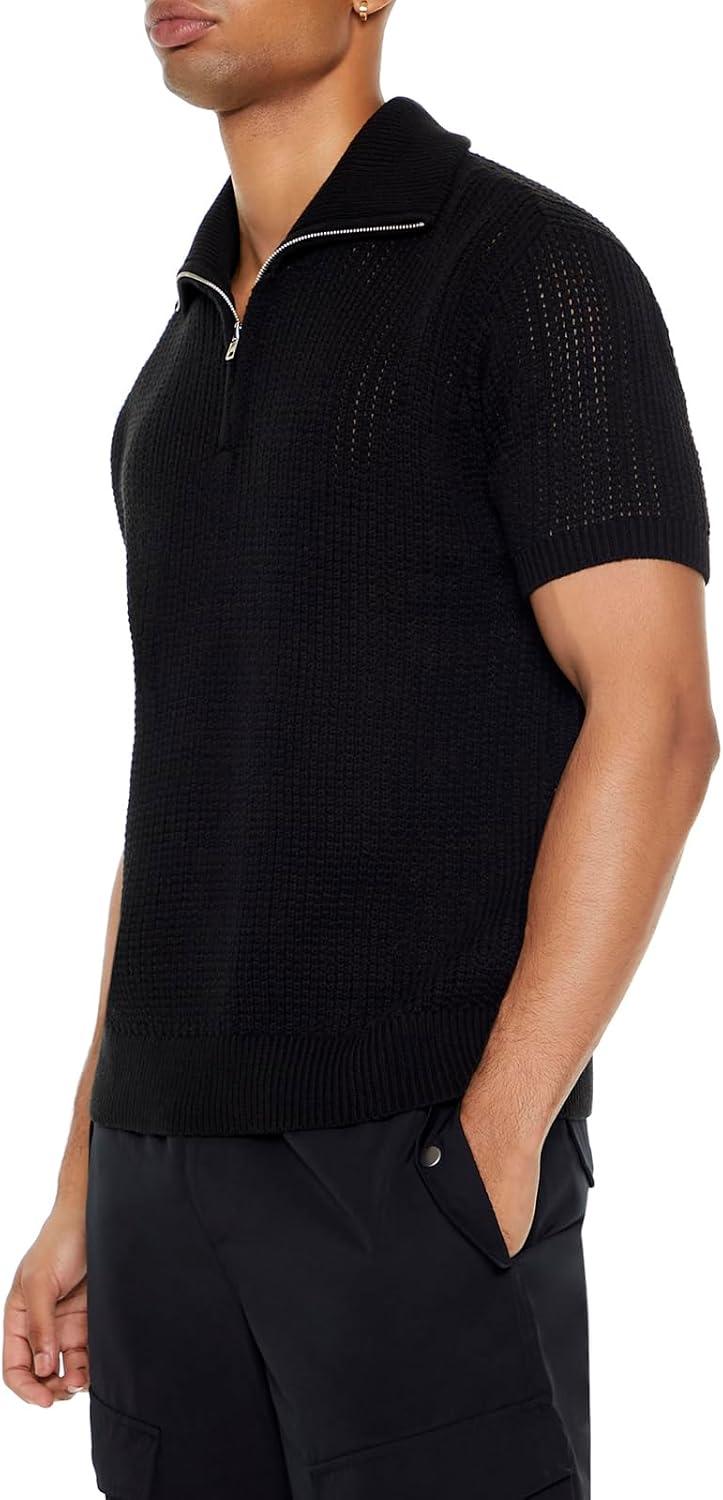 Forever 21 Mens Sweater-Knit Half-Zip Shirt(Black)