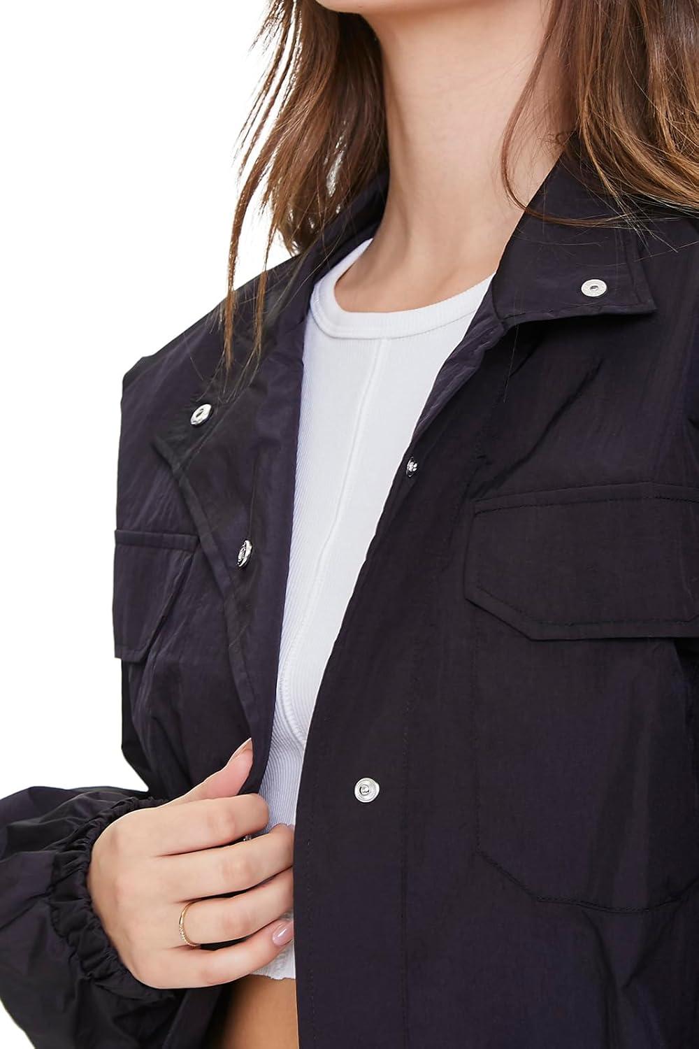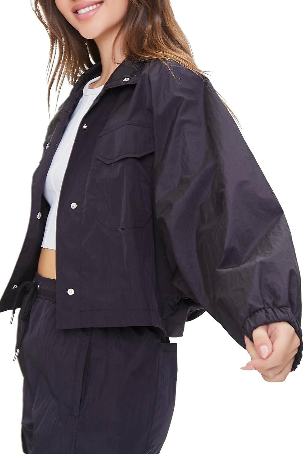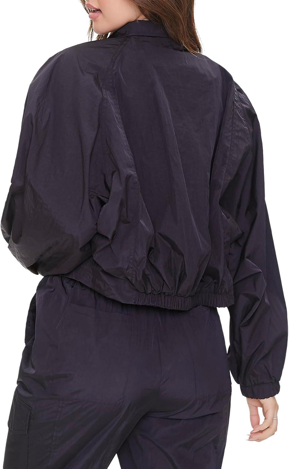 Forever 21 Cropped Raglan-Sleeve Windbreaker BLACK Medium