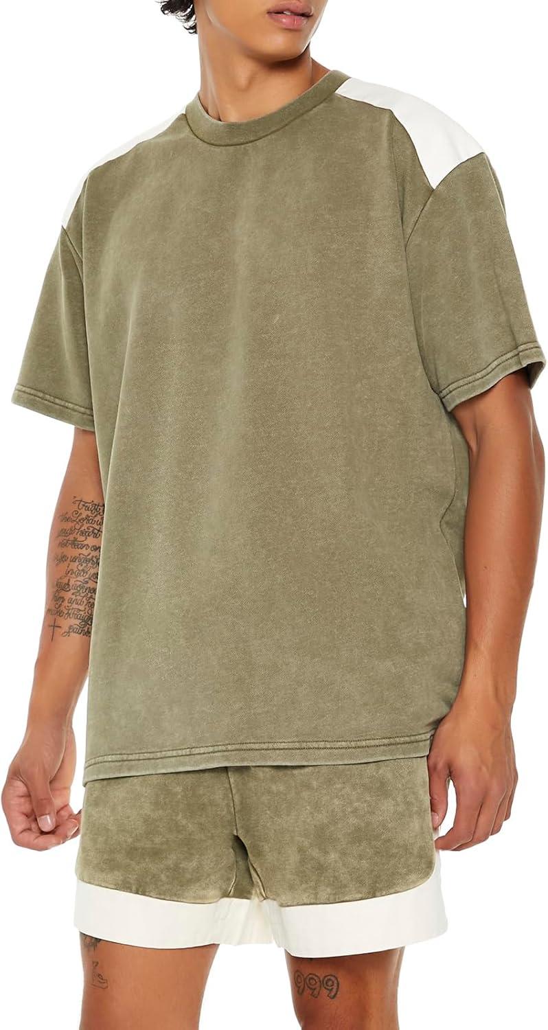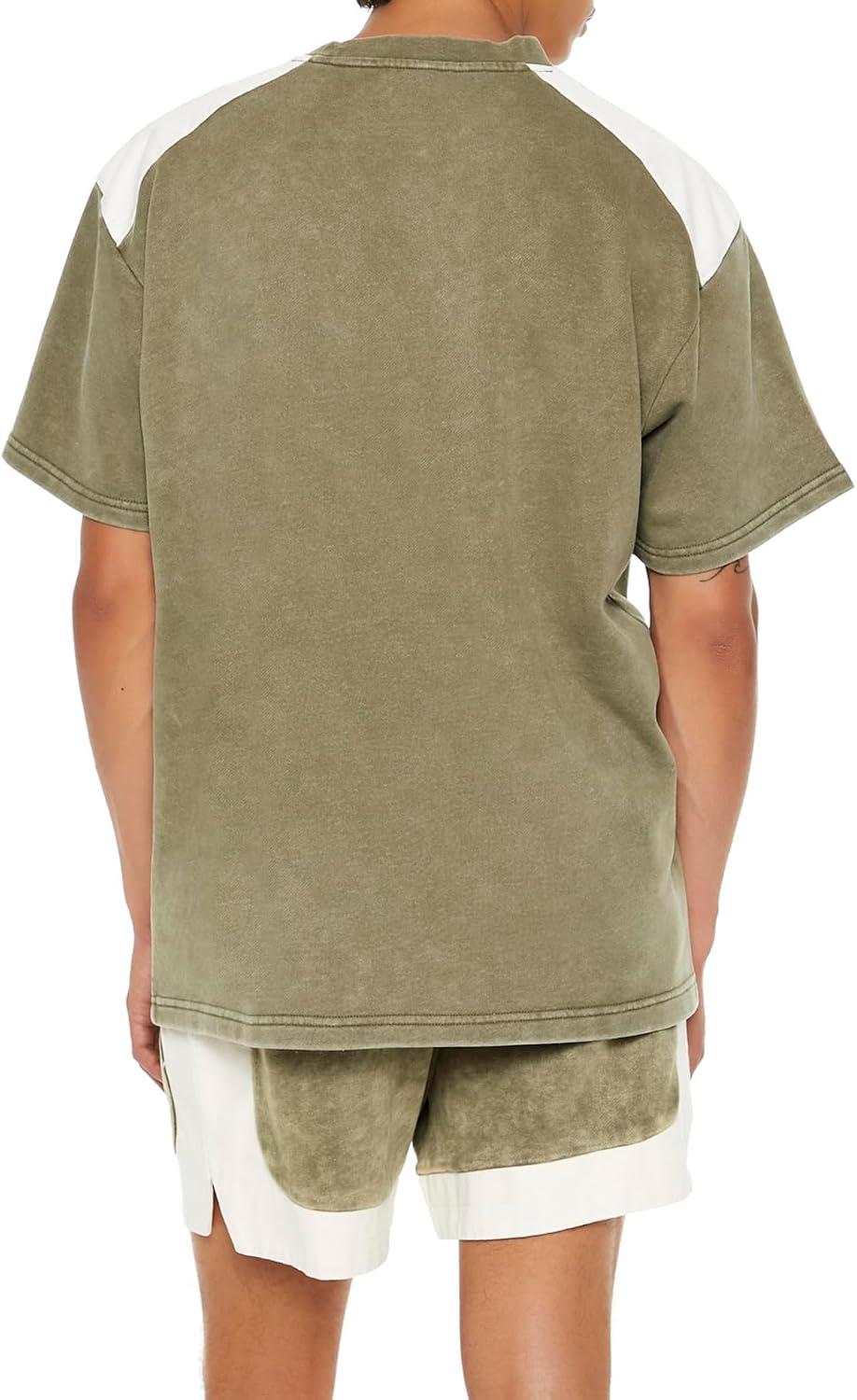 Forever 21 Men’s Colorblock Short-Sleeve Pullover(Olive)
