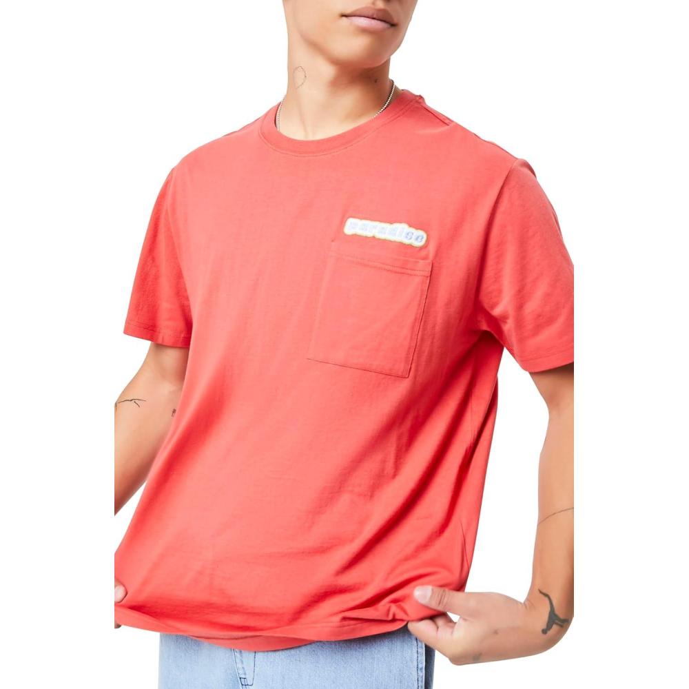 Forever 21 Men’s Embroidered Paradise Graphic Tee(Red)