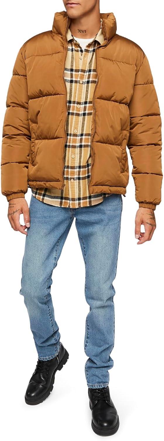 Forever 21 mens Faux Shearling-collar Striped Jacket(Black/Cream)