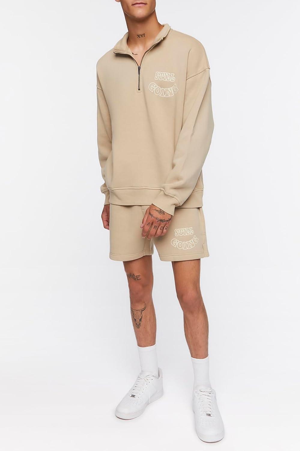 Forever 21 Men’s Fleece Flocked Still Going Graphic Shorts(Taupe)