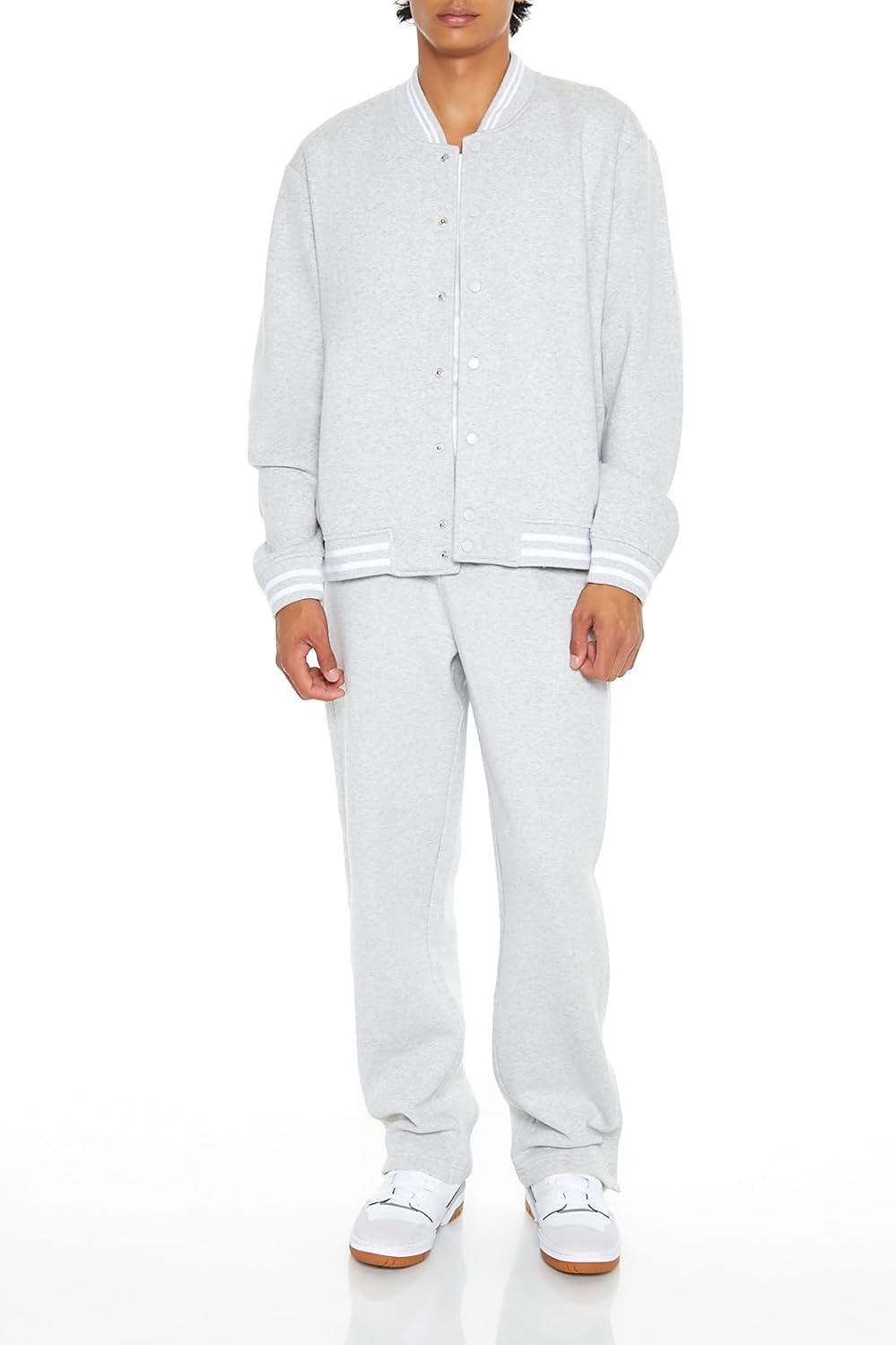 Forever 21 Men’s Heathered Varsity Bomber Jacket(Heather Grey)