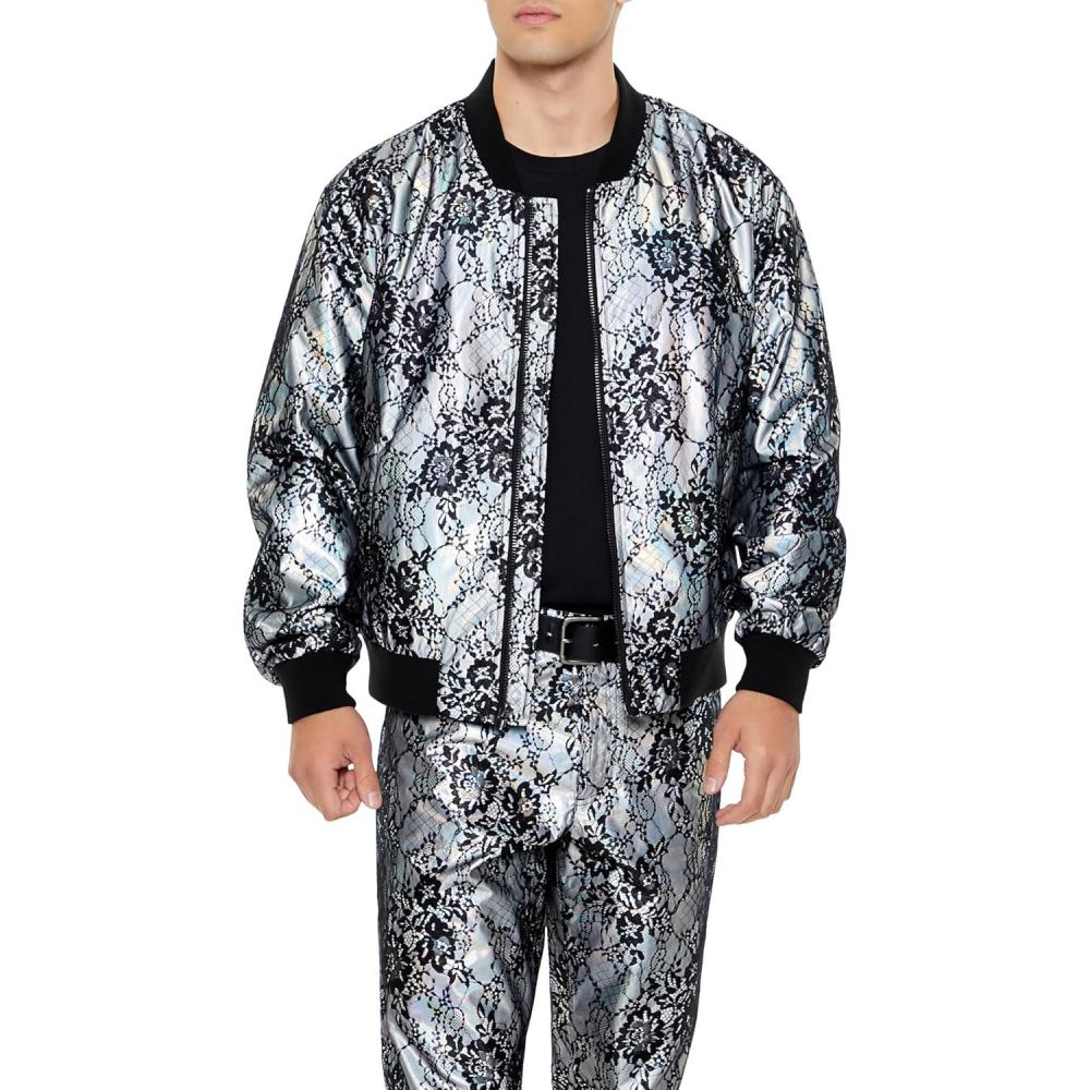Forever 21 Men’s Lace Bomber Jacket, Black/Multi