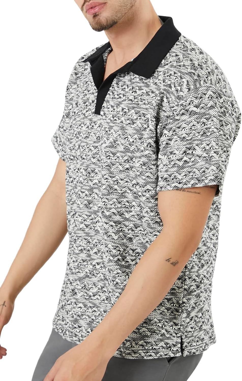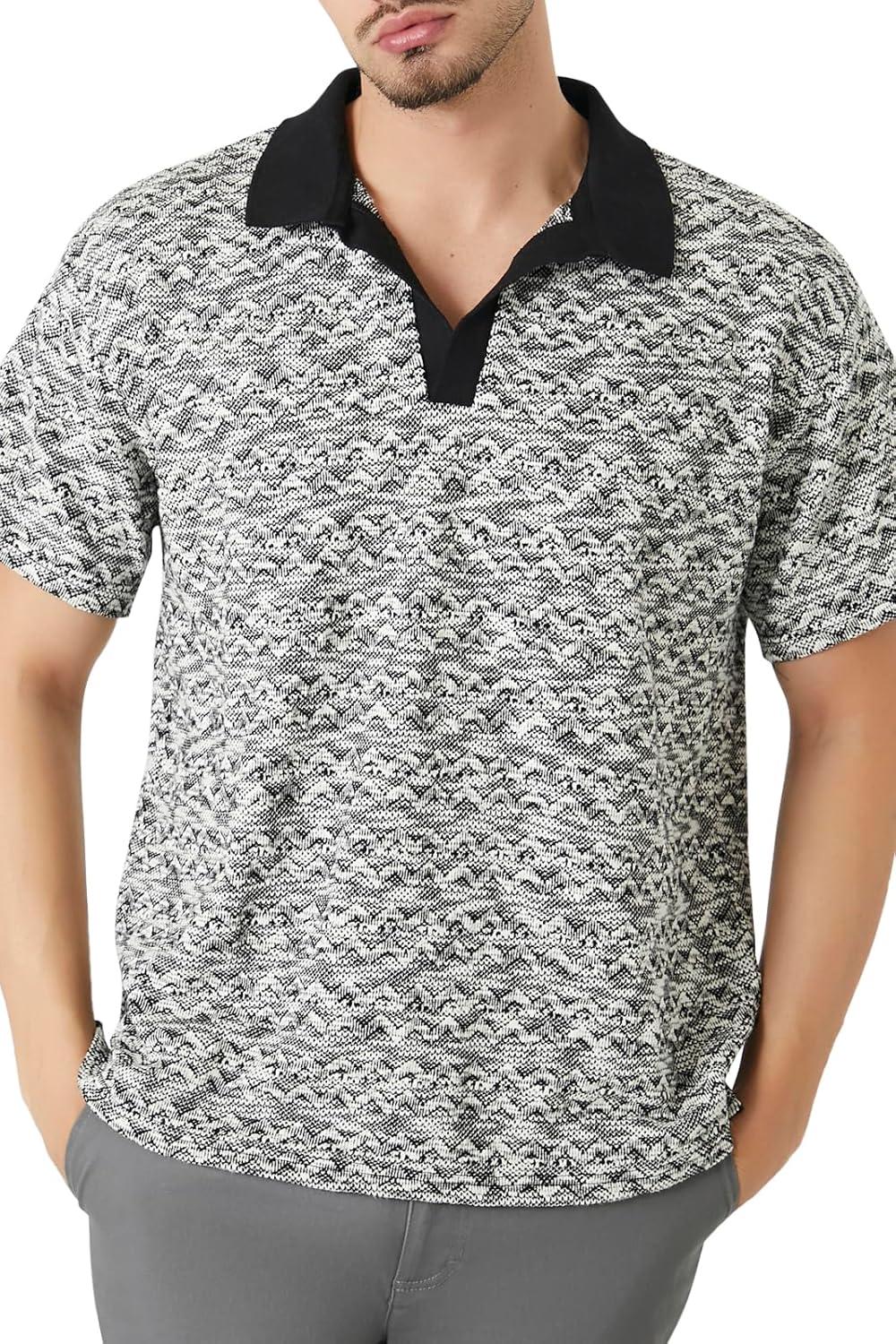Forever 21 Men’s Ornate Polo Shirt(Black)