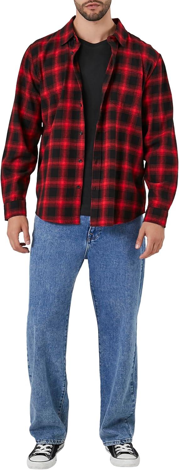 Forever 21 Men’s Plaid Flannel Shirt(Red)