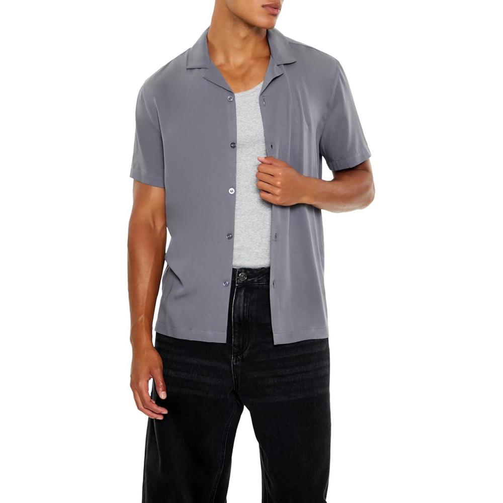 Forever 21 Men’s Rayon Cuban-Collar Shirt(Grey)