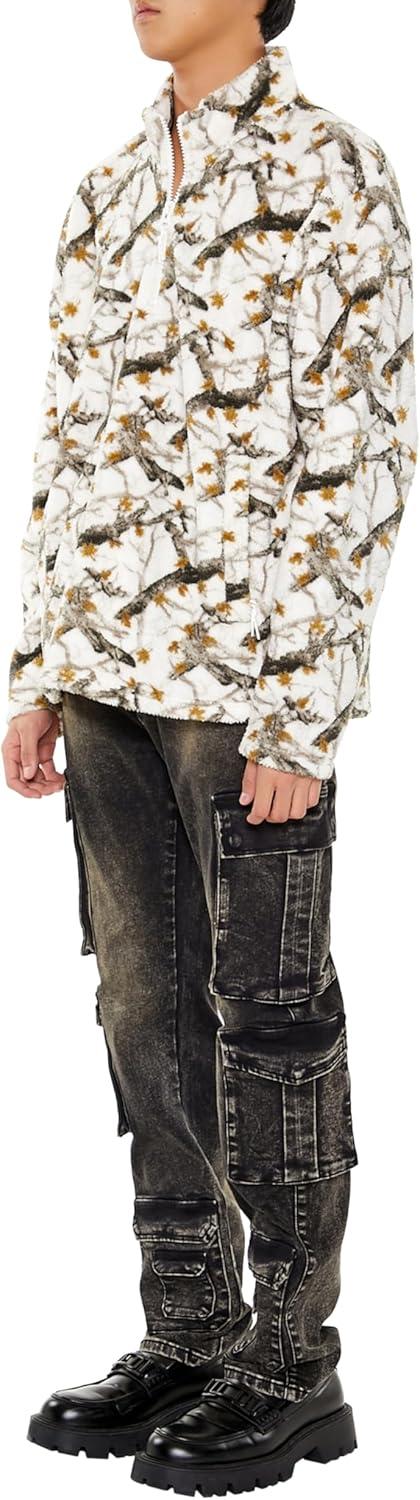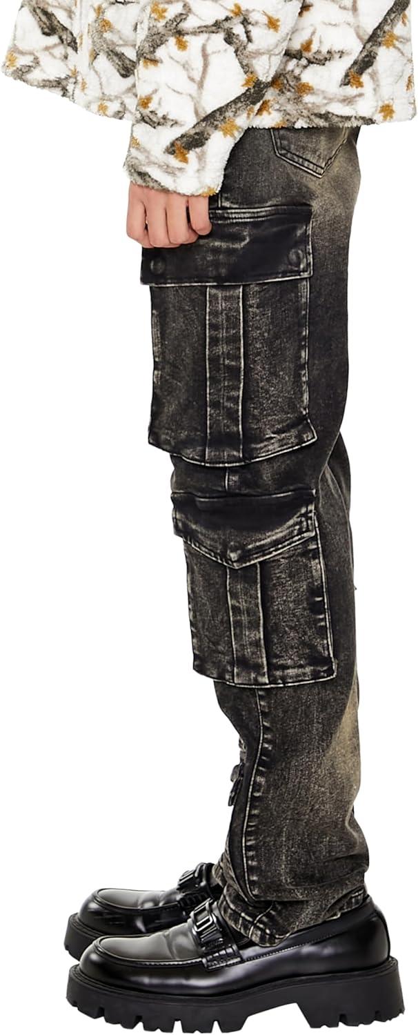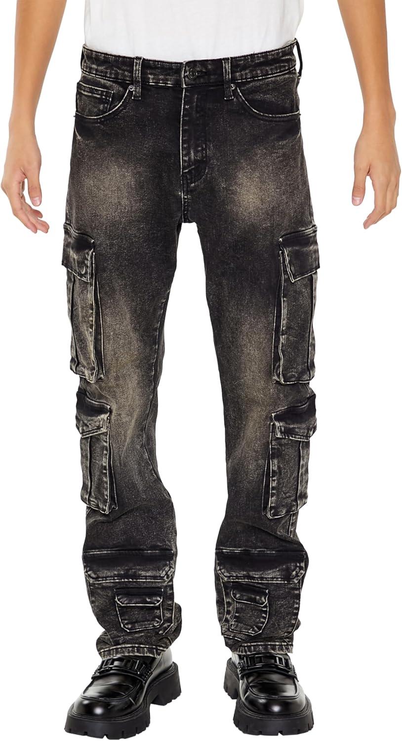 Forever 21 Men’s Slim-fit Mid-Rise Cargo Jeans(Washed Black)