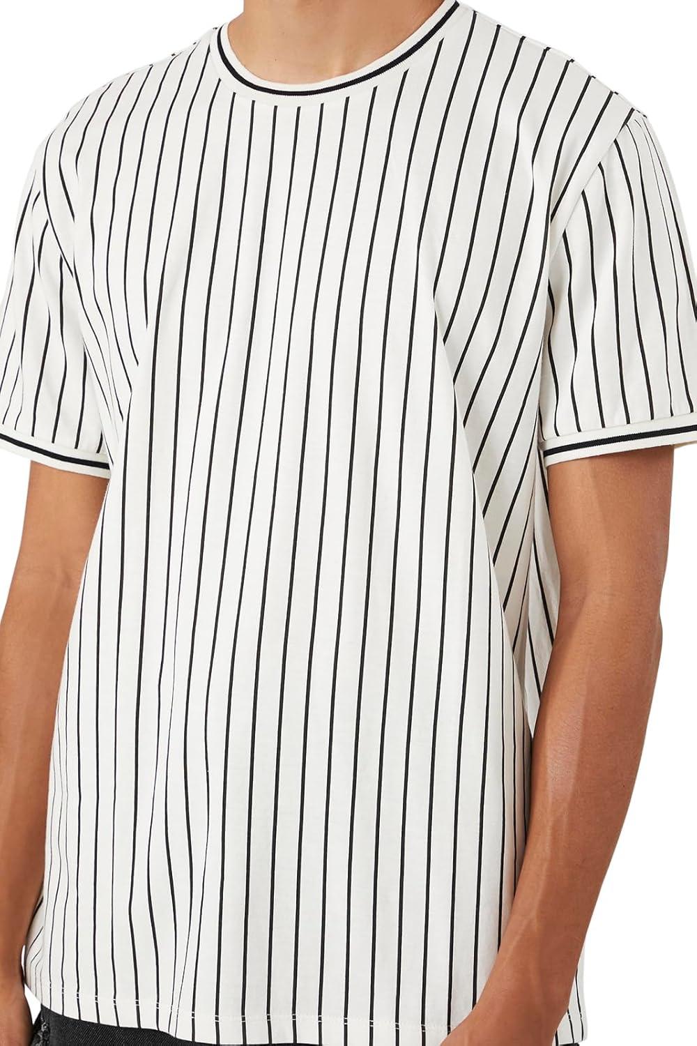 Forever 21 Men’s Striped Crew-Neck Tee(White)