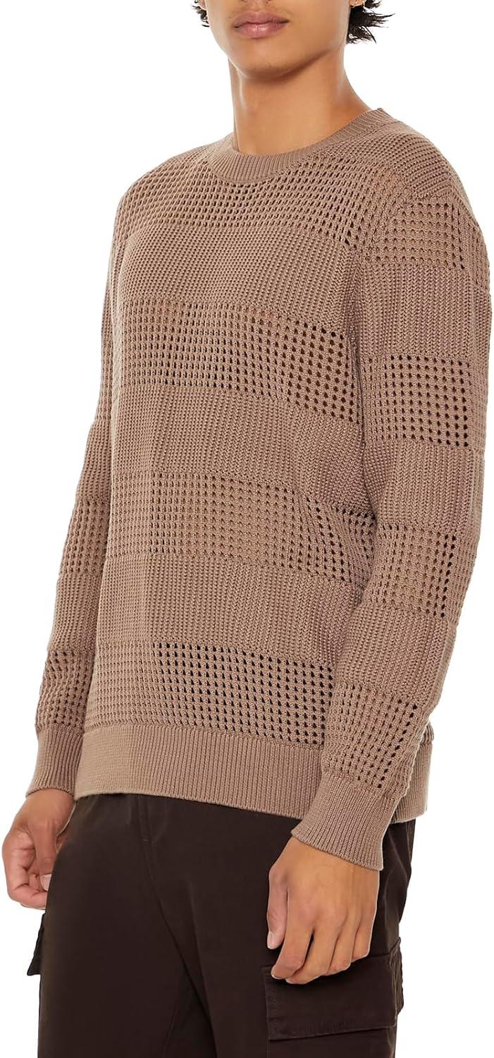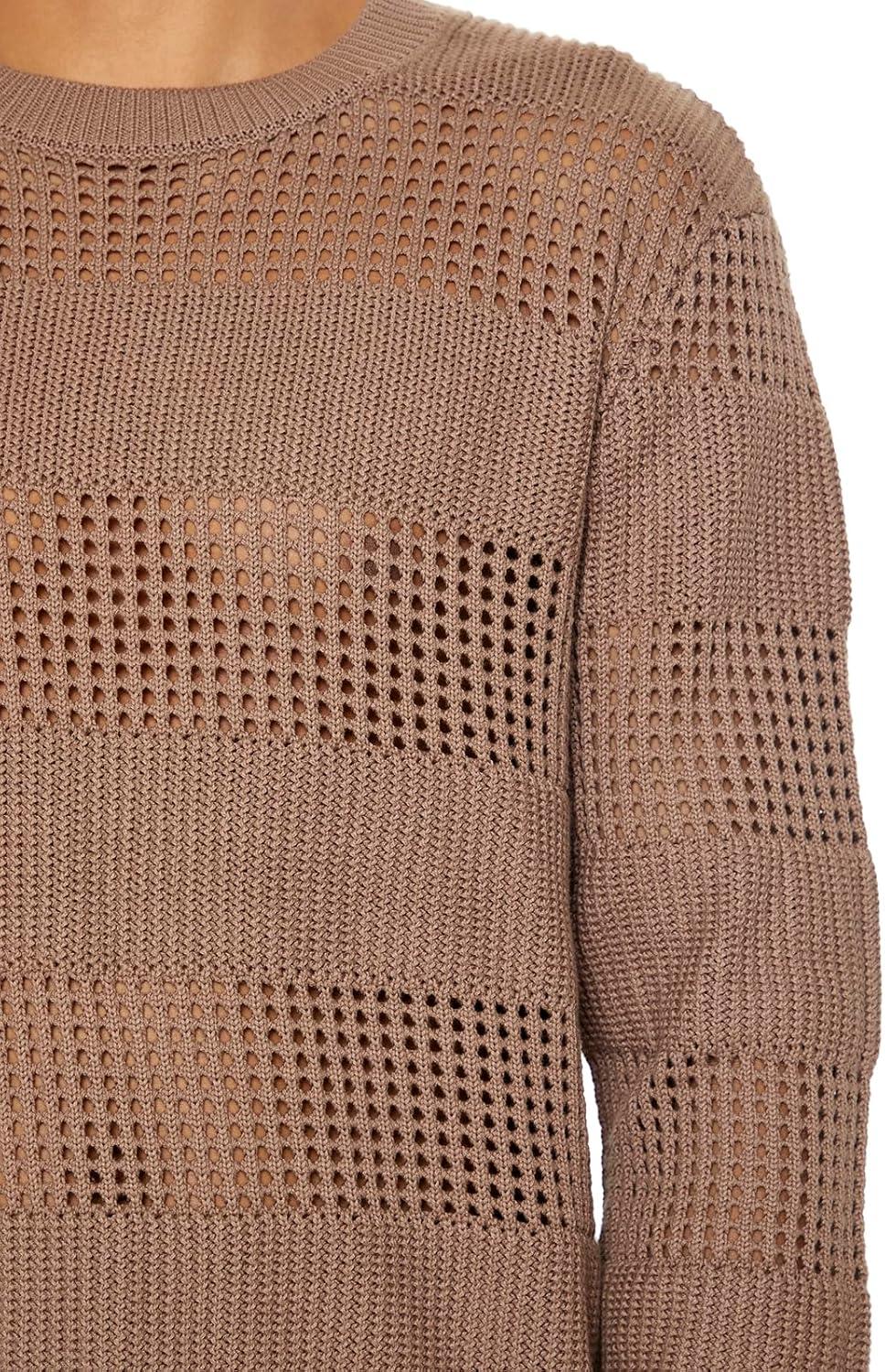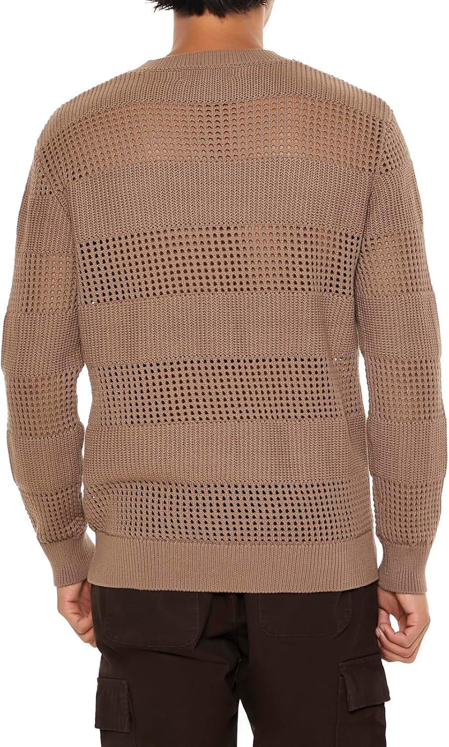 Forever 21 Mens Striped Crochet Sweater(Deep Taupe)