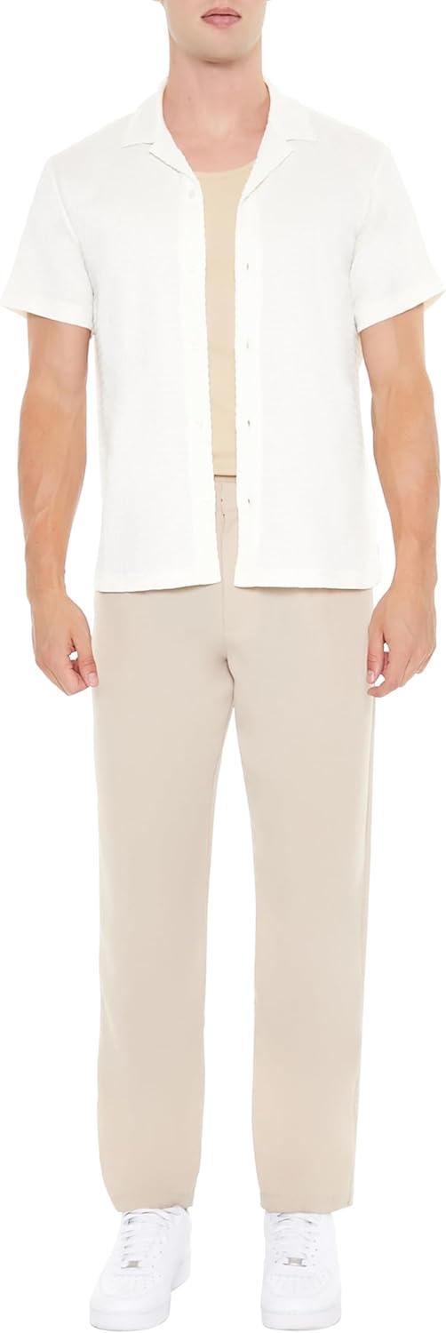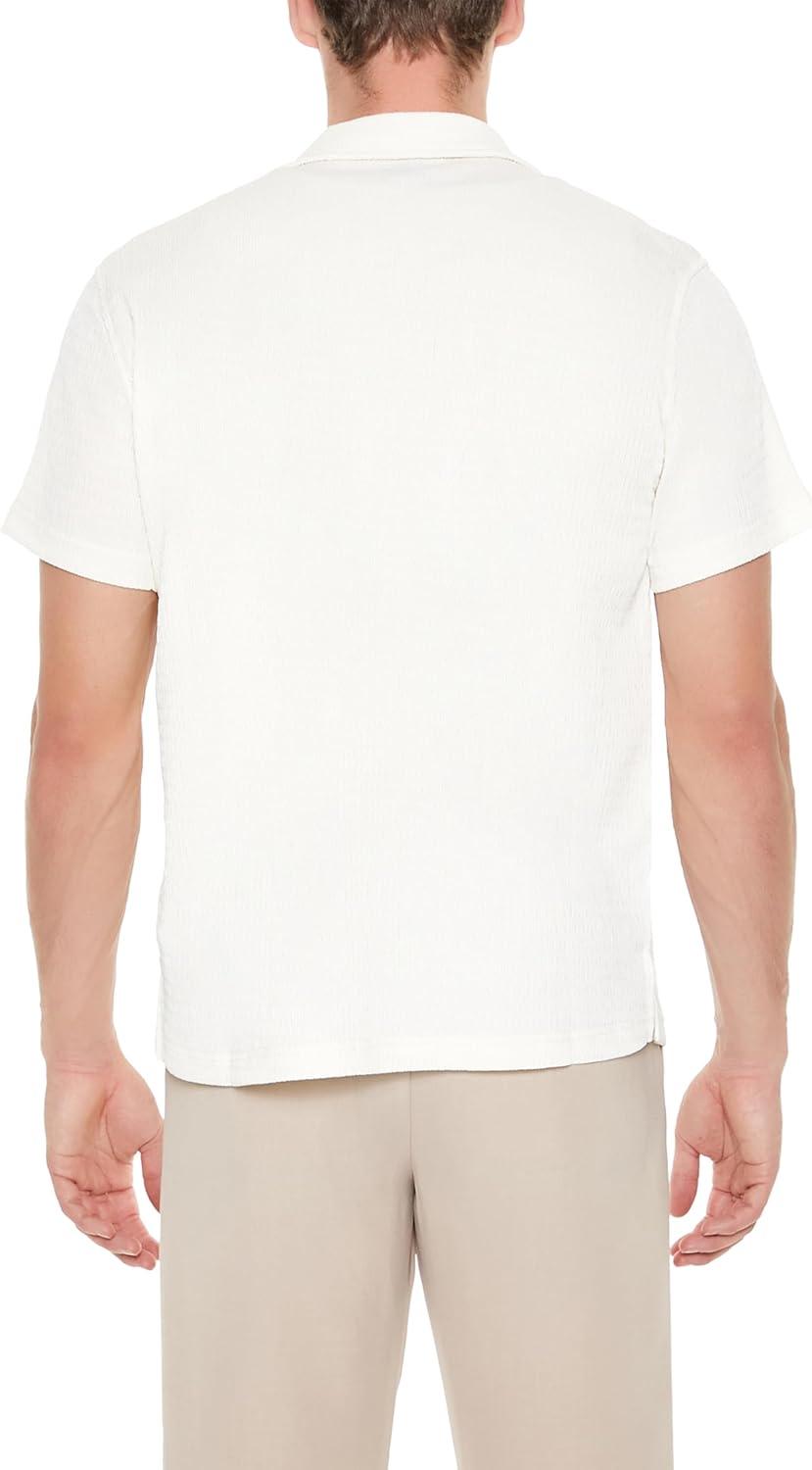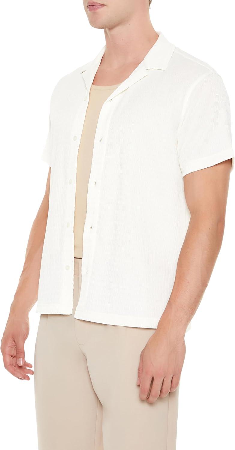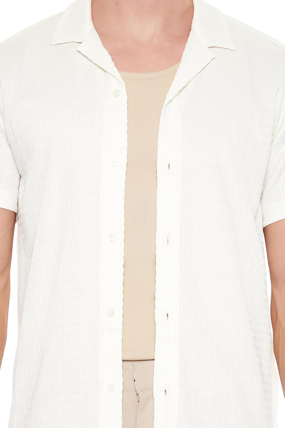 Forever 21 Mens Textured Cuban-Collar Shirt(White)