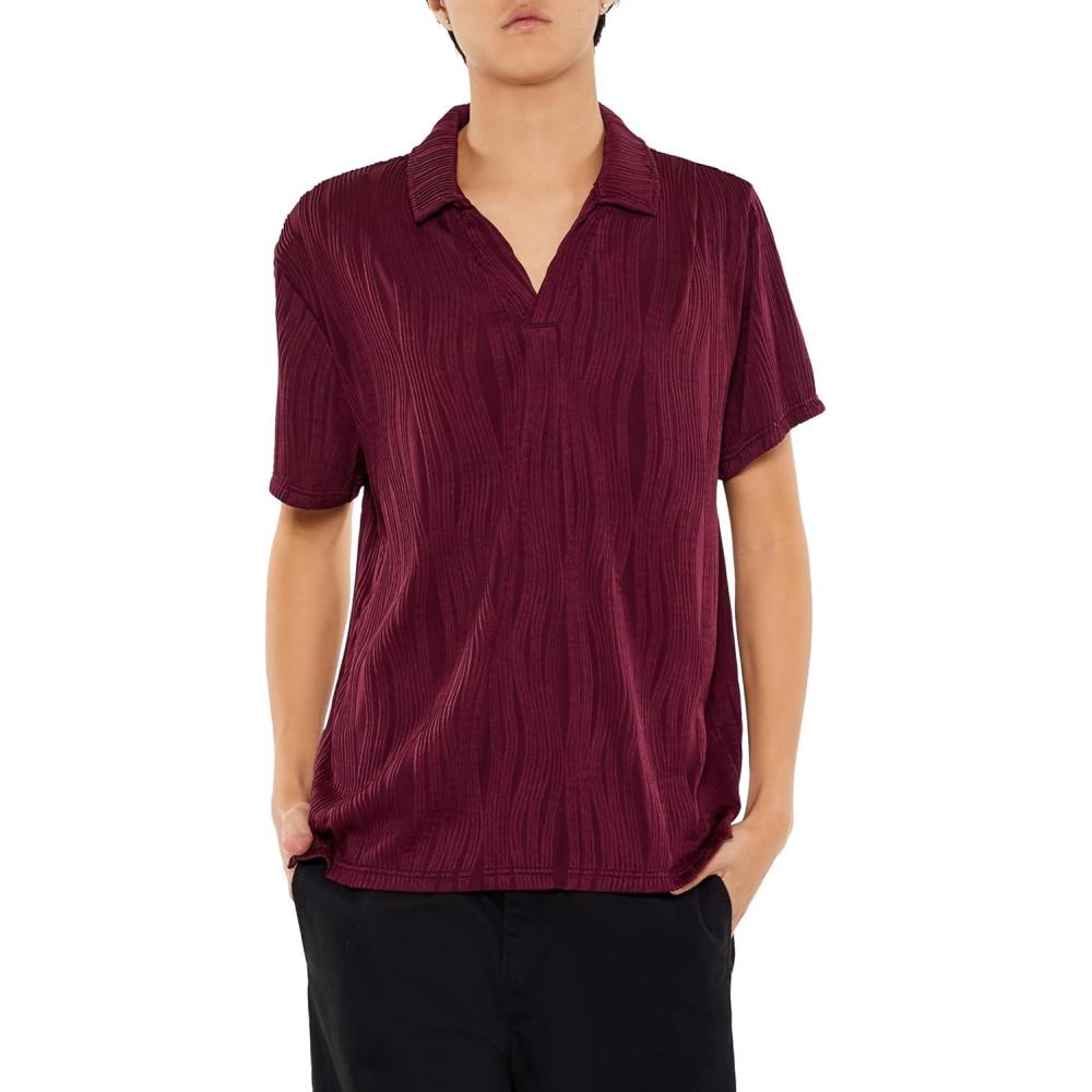 Forever 21 Men’s Textured Slim-fit V-Neck Polo Shirt(Purple)