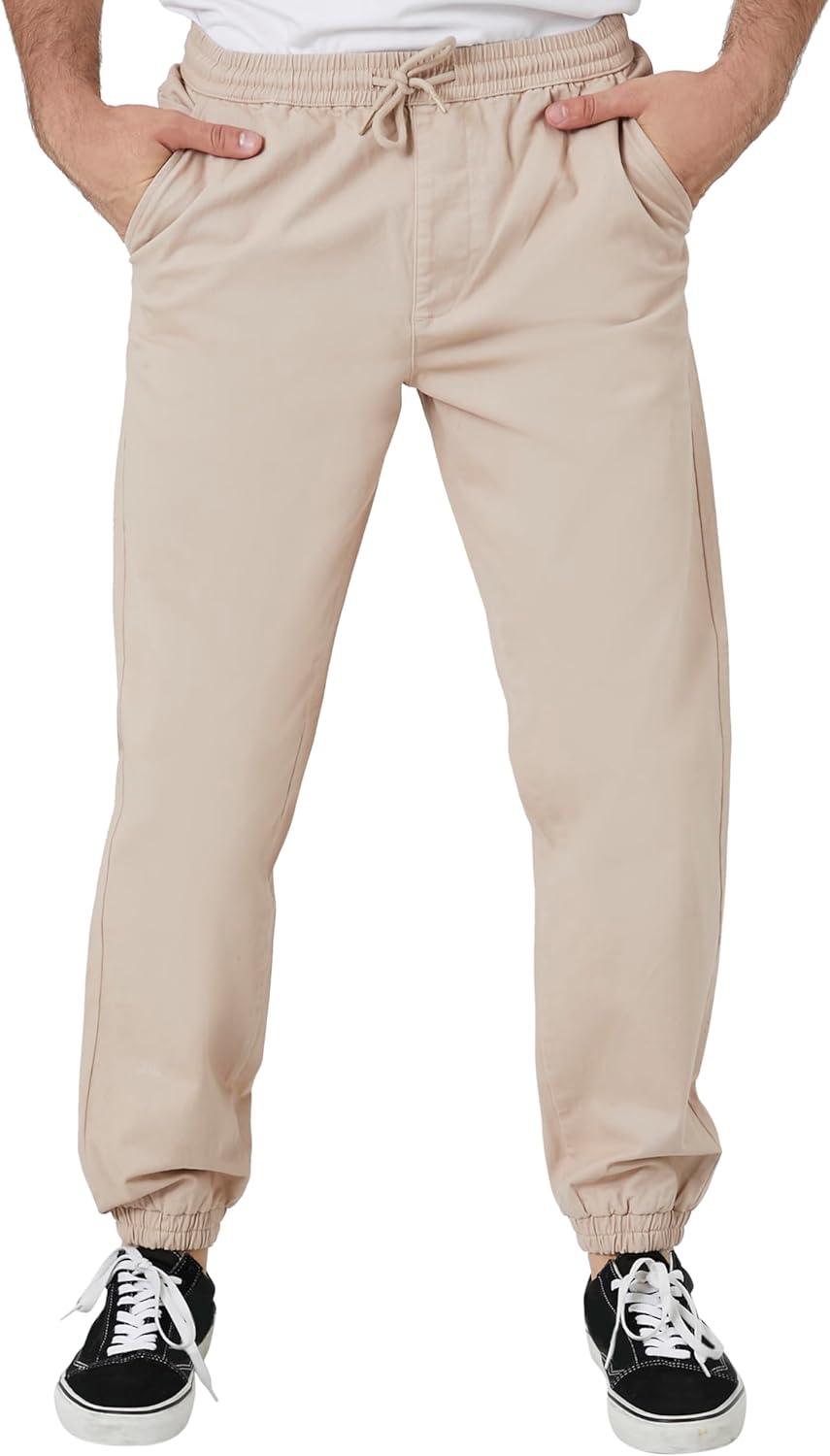 Forever 21 Men’s Twill Drawstring Joggers(Taupe)