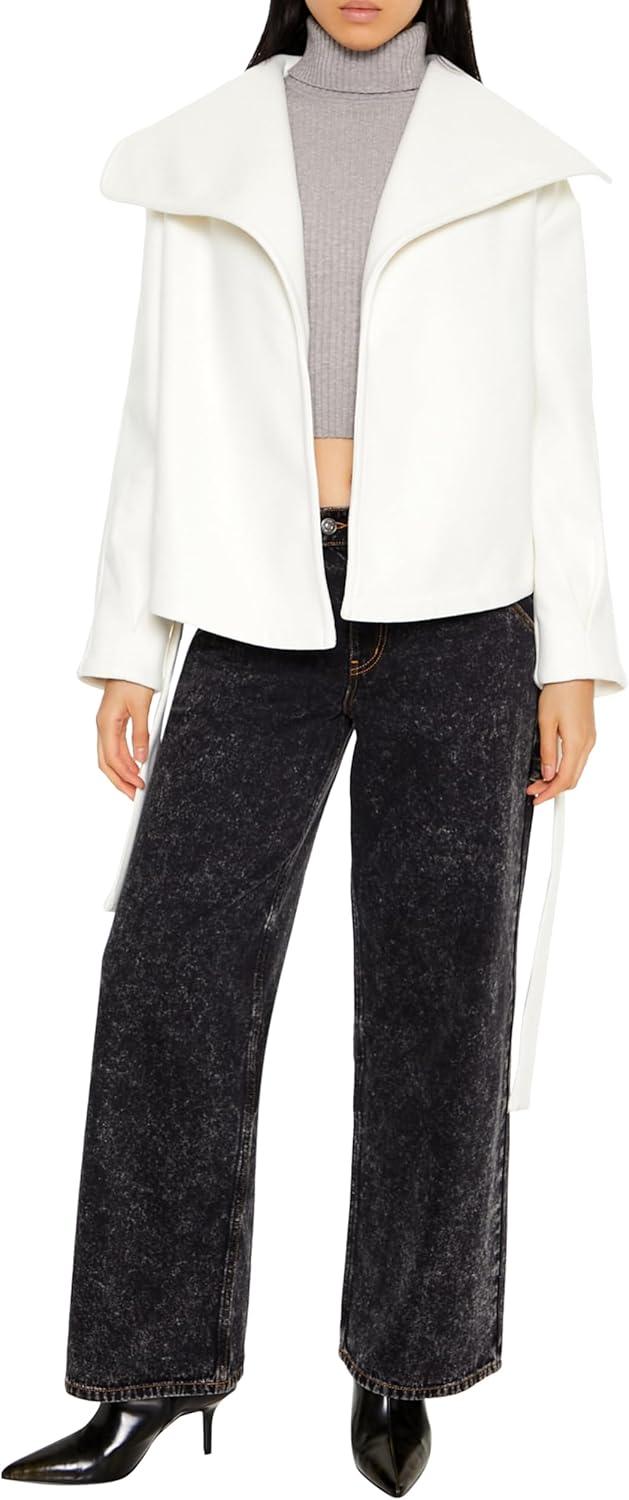 Forever 21 Women’s Brushed Tie-Waist Wrap Coat(Egret)
