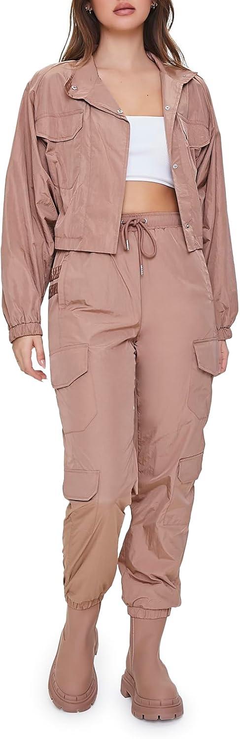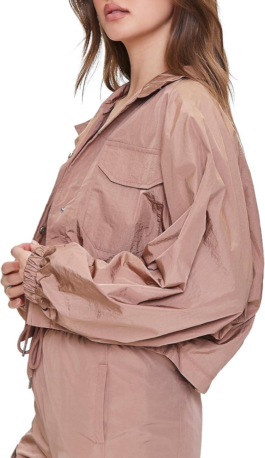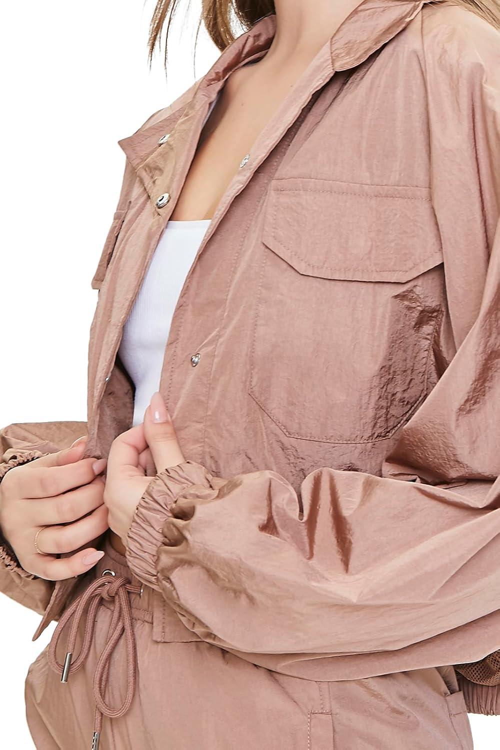 Forever 21 Women’s Cropped Raglan-Sleeve Windbreaker(Cocoa)
