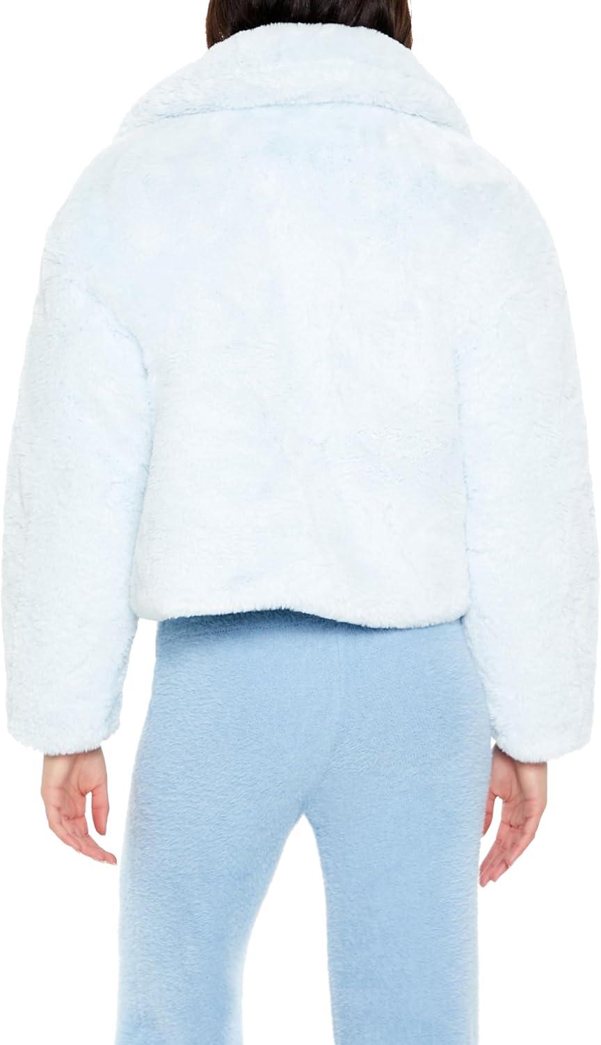 Forever 21 womens Faux Fur Zip-up Coat(Light Blue)