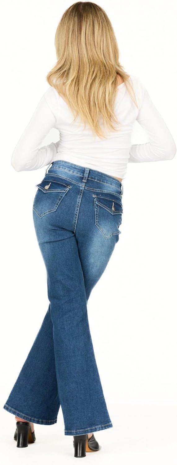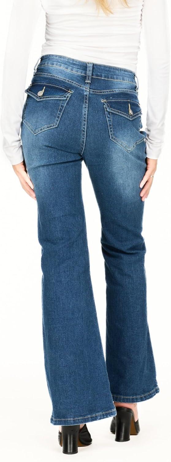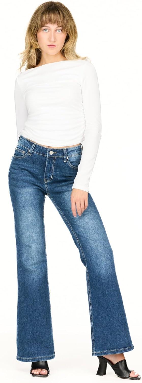 Forever 21 Women’s Flare Denim High-Rise Slim Fit Stretch Jeans-Retro Y2k Style(Dark Wash)