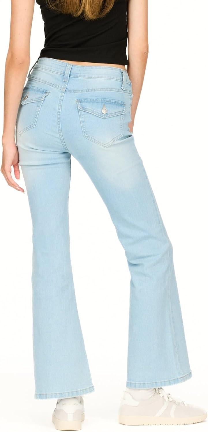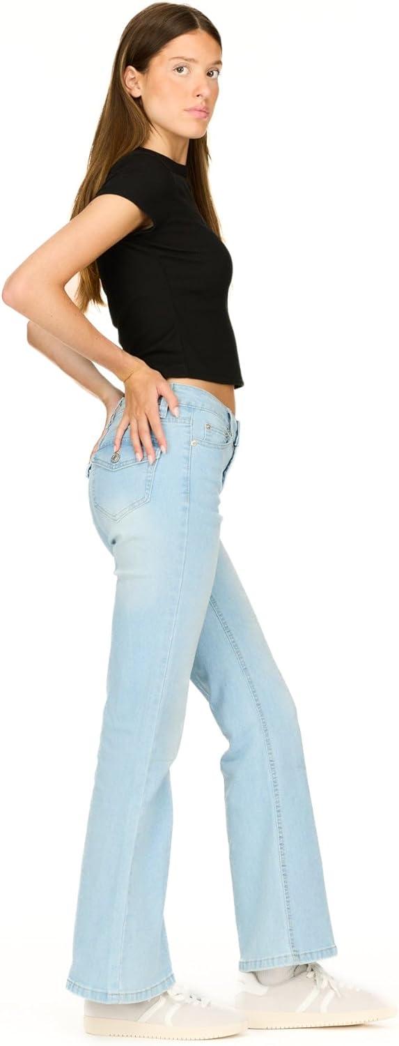 Forever 21 Women’s Flare Denim High-Rise Slim Fit Stretch Jeans-Retro Y2k Style(Light Wash)
